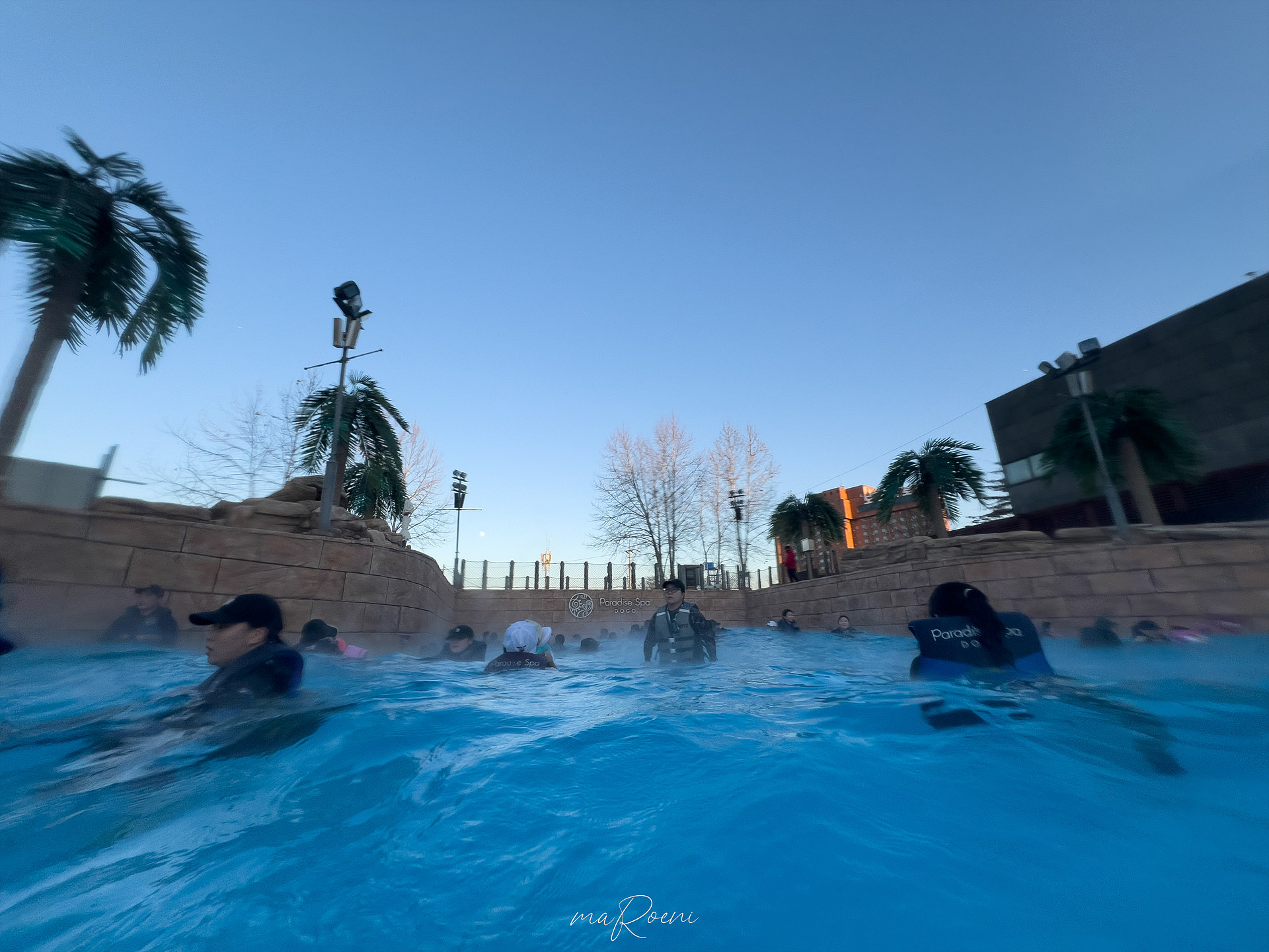 실내수영장에서 물길 따라 나가면 유수풀이 나옴. 진짜 날씨가 뒤지게 추웠어가지고 유수풀에서 어떻게 놀지 걱정했었는데 물이 미지근해서 적당히 버틸만했었다. 몸은 뜨끈한데 얼굴이 차가워가지고 뻘겋게 달아오를 수 있음주의.