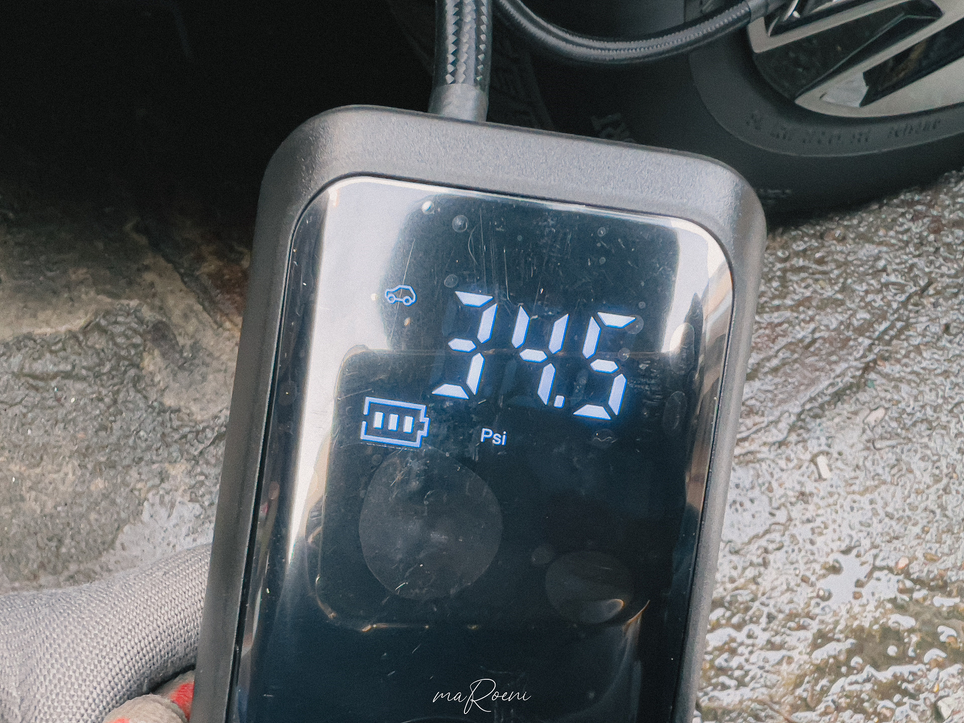 예스! 정상적으로 공기압이 주입된 것을 확인할 수 있다! 자전거 같은 건 작아서 그런가. 초보자도 부담 없이 공기압을 주입할 수 있는데 차량은 뭐랄까.. 살짝 두려운..? 무서운..? 아무튼 겁이 났었다. 그런데 막상 셀프 타이어 공기압 주입기를 사용해 보니 정말 별 거 아니었구나 싶더라. 살까 말까 망설였었는데, 아주 개꿀딱인 그런 아이템임.