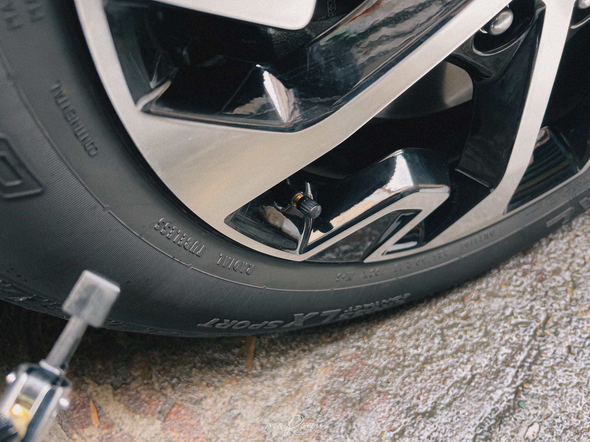 셋팅이 다 끝났으면 타이어에 붙어있는 저 검정색 고무마개를 돌려서 열어준다. 나중에 다시 끼워 넣어야 하니 잘 챙겨주도록 하자.