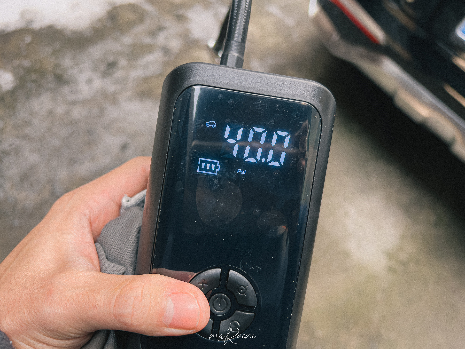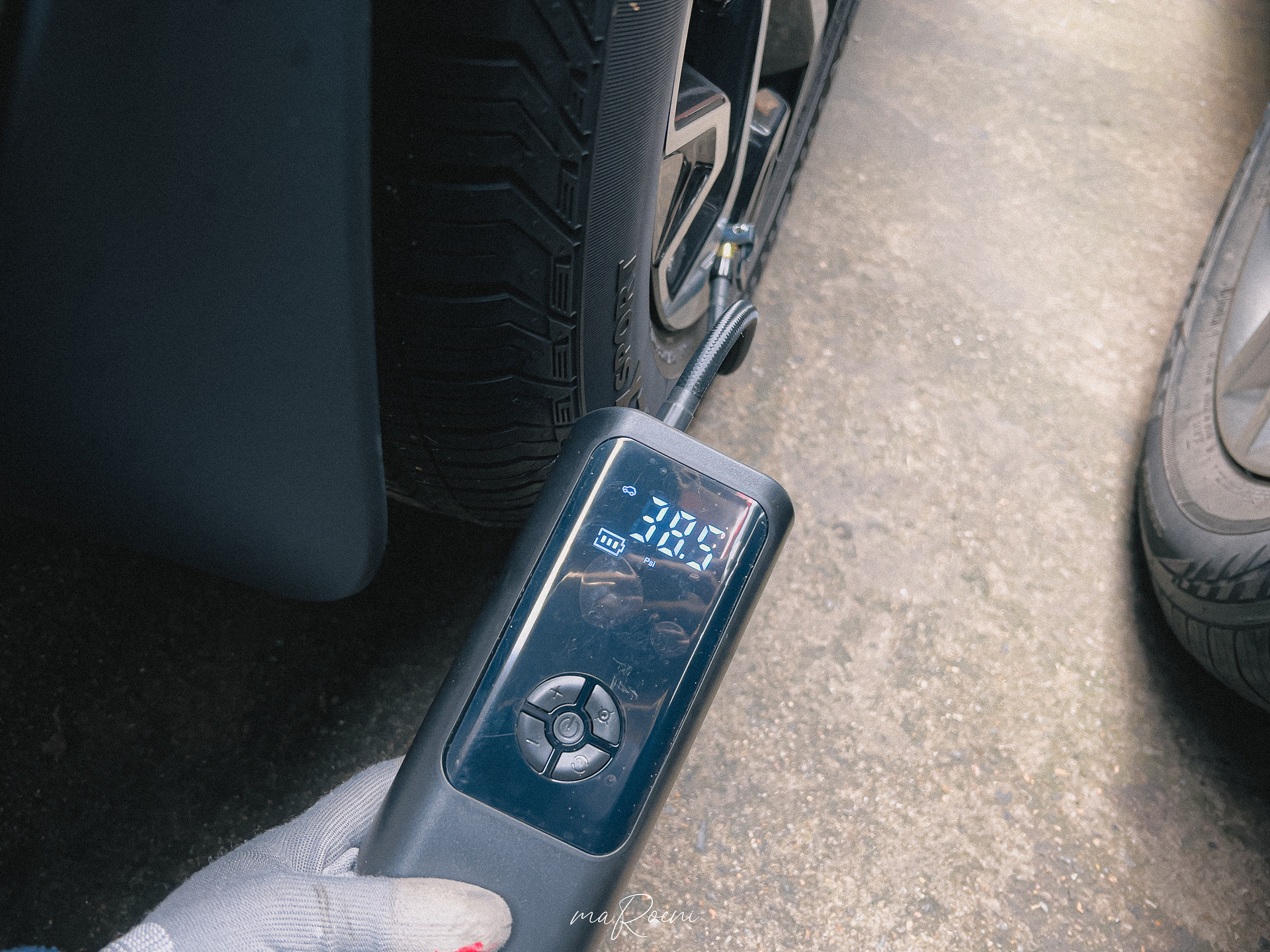 사실 이걸 구매하지 않아도 되긴 했었다. 차량 트렁크를 열어보면 기아에서 기본으로 지급해 주는 공기압 주입기가 있기 때문이다. 근데.. 이건 눈금으로 보고 사용자가 공기압을 주입하는 거라 정확하게 주입하는 것이 사실상 어렵다고 하더라. 그렇기에 수치상으로 정확하게 공기압을 넣을 수 있는 메이튼 차량 공기압 주입기를 선택!