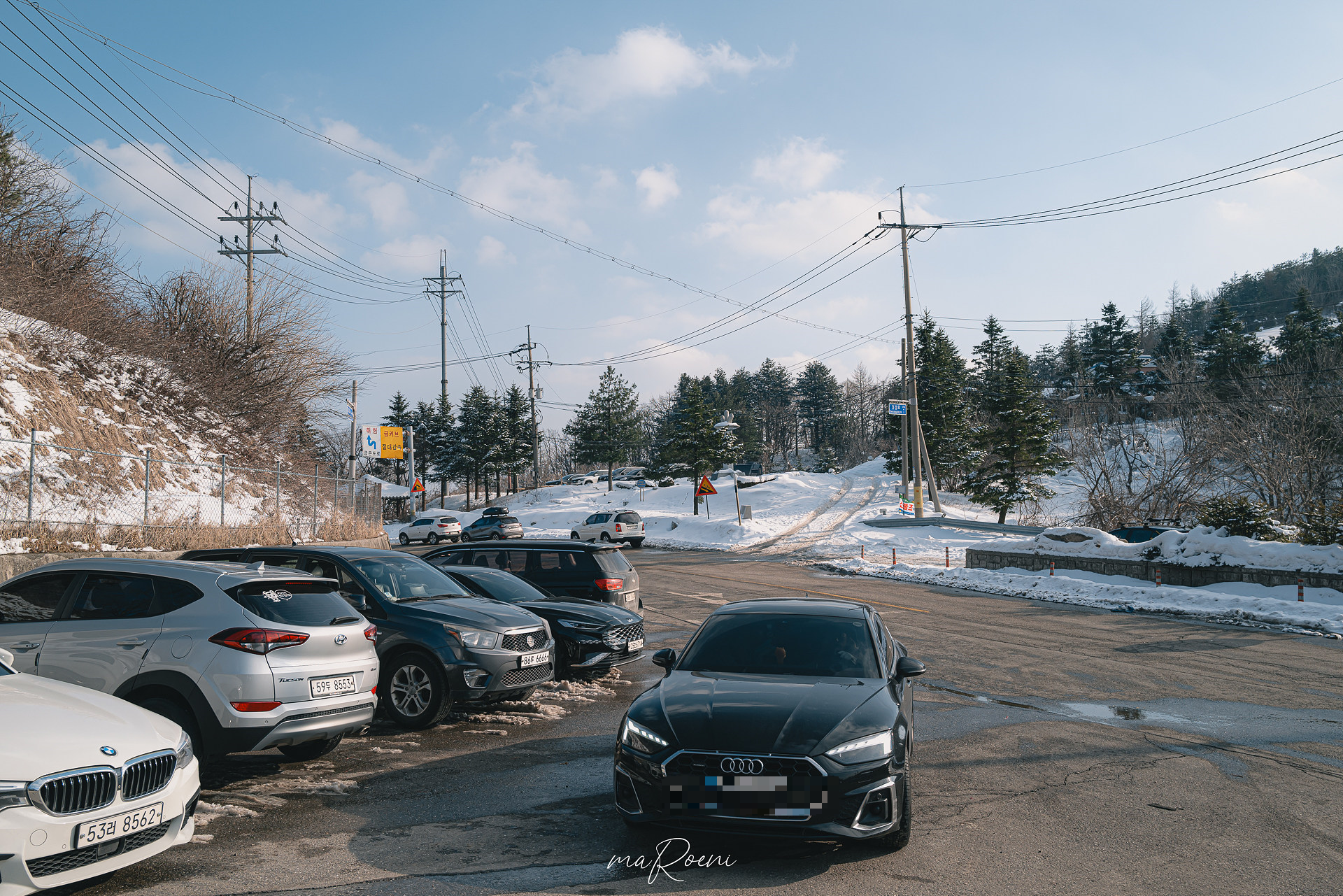 눈꽃이 아름답다고 하는 태기산에 다녀왔다. 나는 네비로 양구두미재라는 곳을 찍고 갔는데, 여기가 산의 입구인지는 모르겠으나 관광버스라던가 백패킹 장비를 바리바리 싸오신 분들이 이곳에서 출발하는 것을 보니.. 아마도 이곳이 입구가 맞는 모양이다.