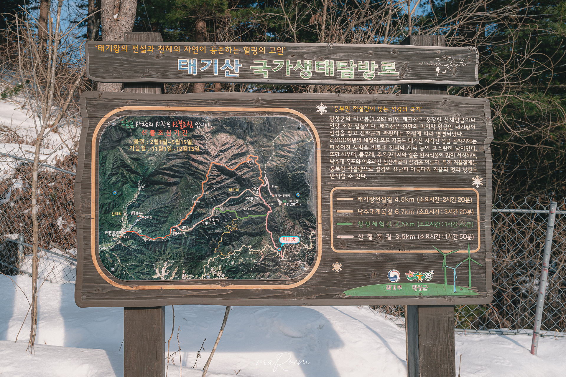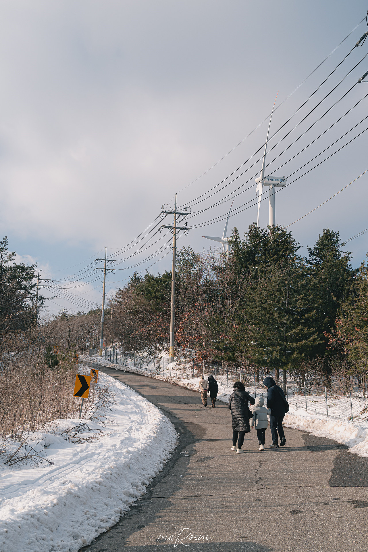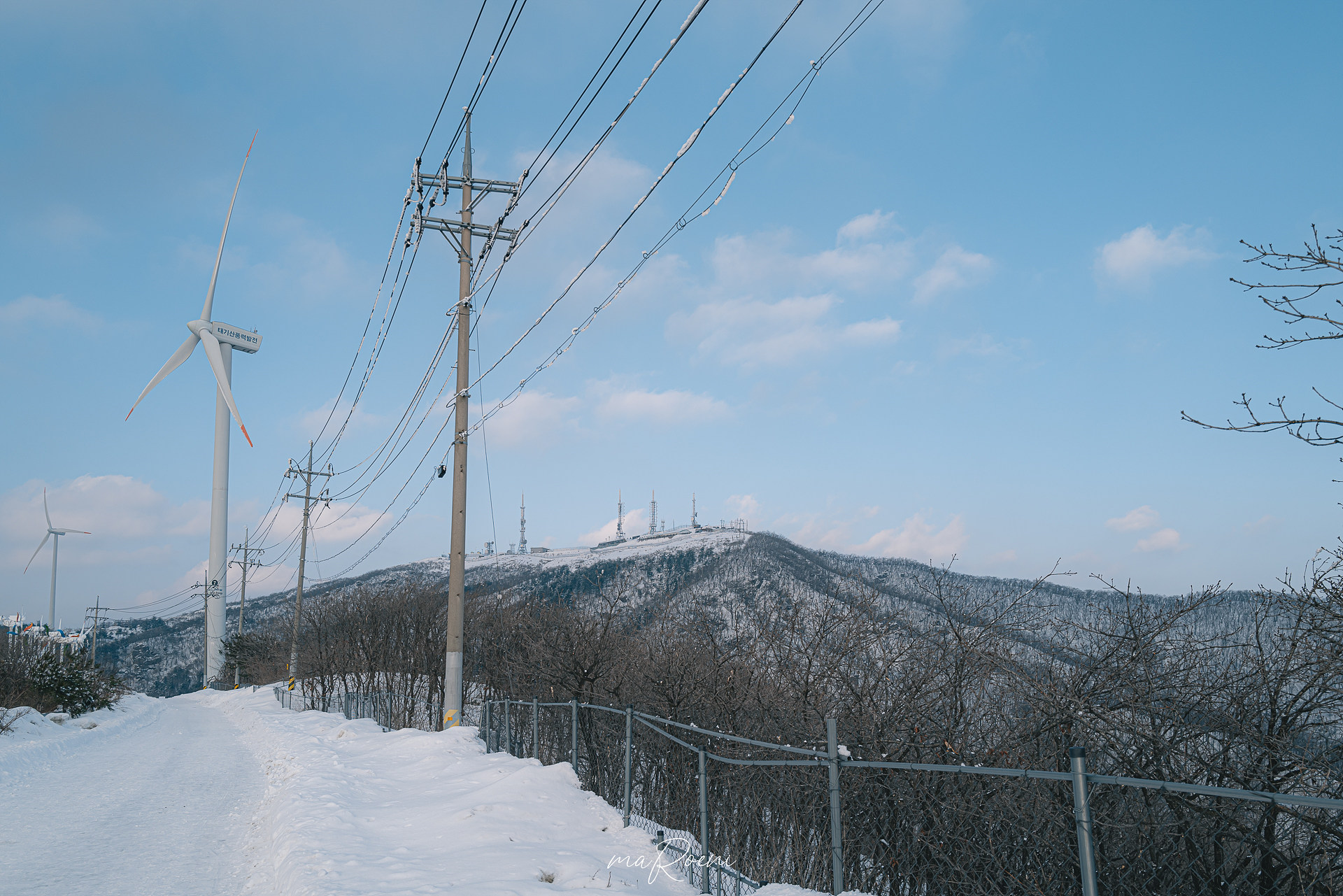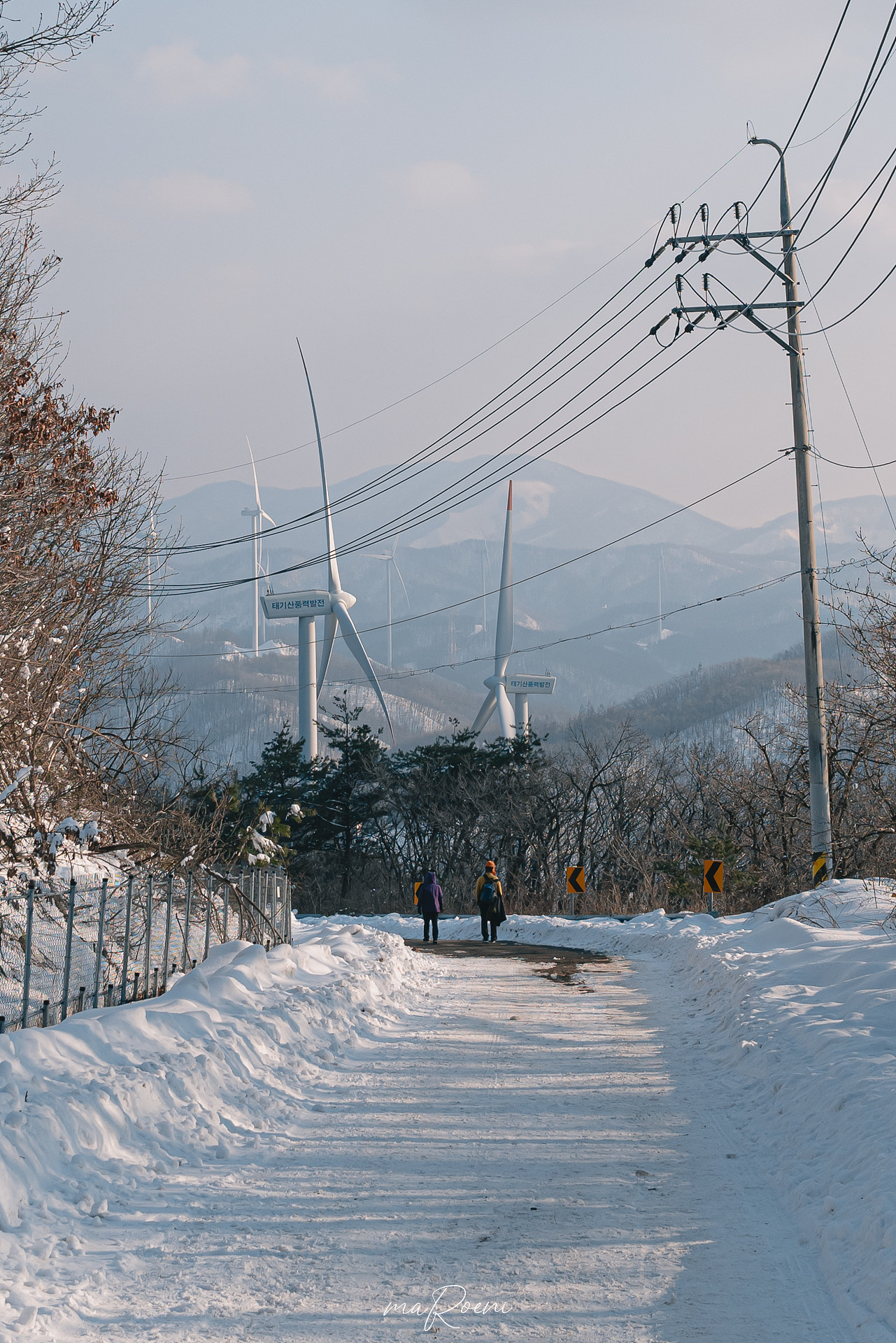 어느 정도 오르다 보니, 아스팔트길은 눈으로 뒤덮여있었다. 다행히도 눈이 미끄럽지는 않았기에 태기산을 오르는데 문제는 없었다.