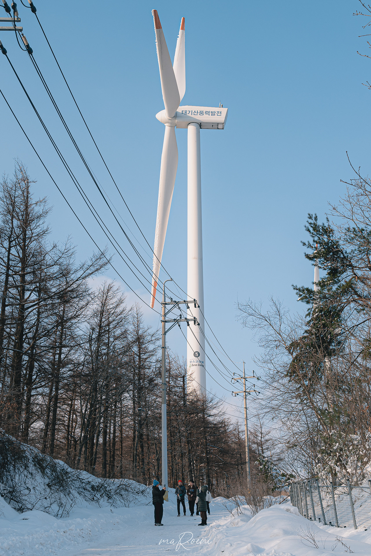 내가 여기 온 이유는 태기산의 풍경과 풍력발전소의 모습을 한컷에 담기 위해서였는데, 딱히 구도를 생각할 필요도 없이 그냥 아무데서나 막 셔터를 눌러도 풍력발전소가 멋드러지게 카메라에 담긴다.