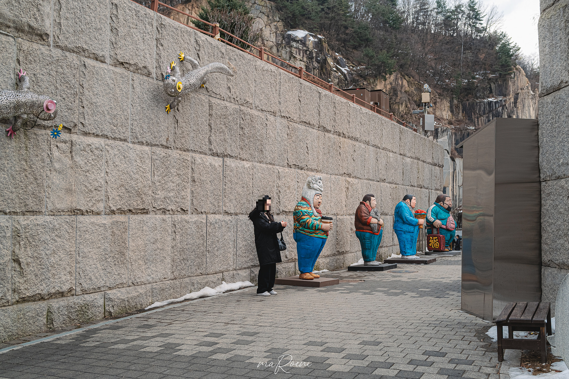 모노레일이 끝나는 구간까지 걸어 올라가니깐 정체를 알 수 없는 마동석을 닮은 조형물들이 우리를 반겼다.
