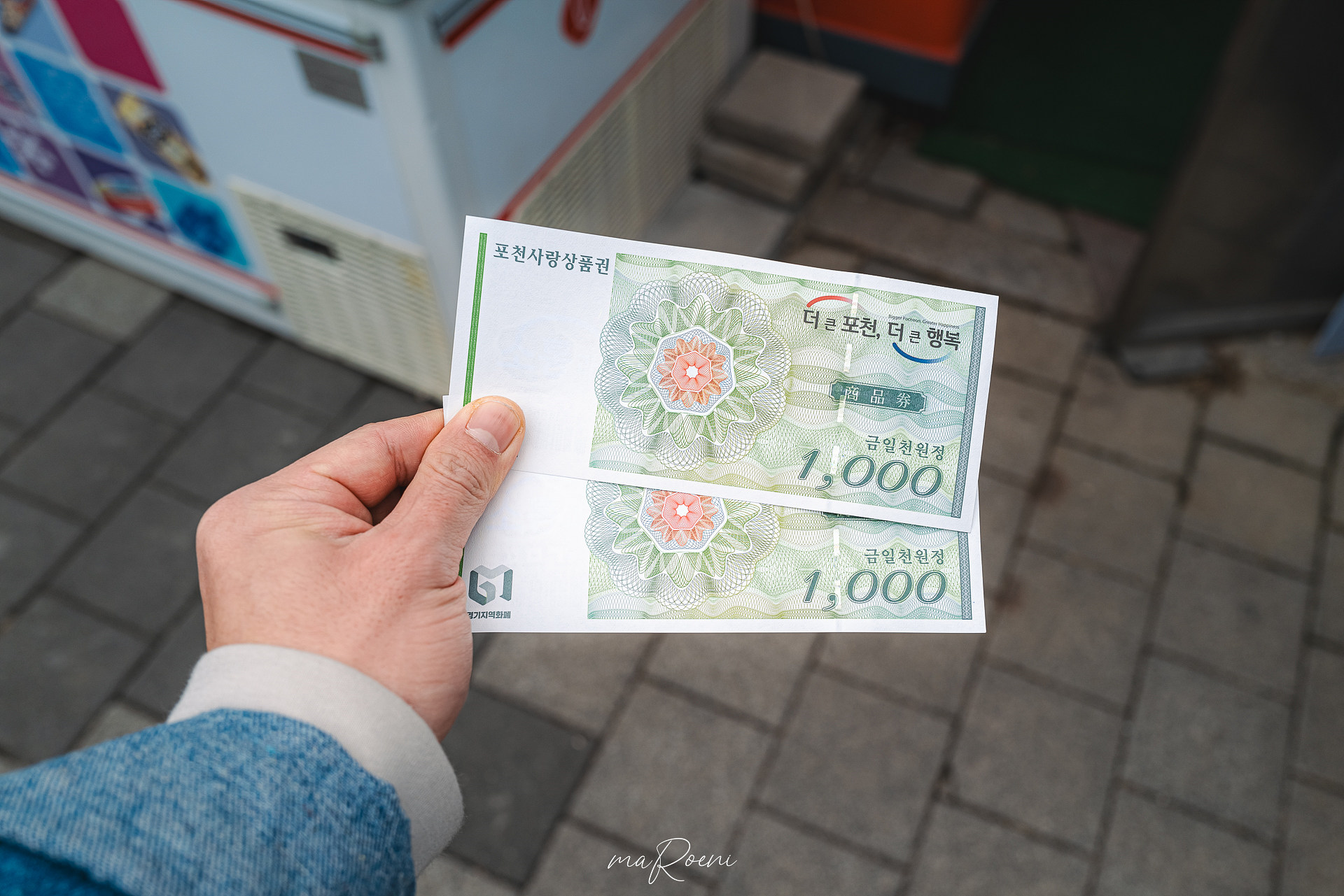입장권 1장당 포천사랑상품권이라는 1,000원짜리 쿠폰을 준다. 이 쿠폰은 포천아트밸리에서 운영 중인 카페나 매점에서 사용할 수 있는데 이 쿠폰을 여기서 사용할 수 있다.