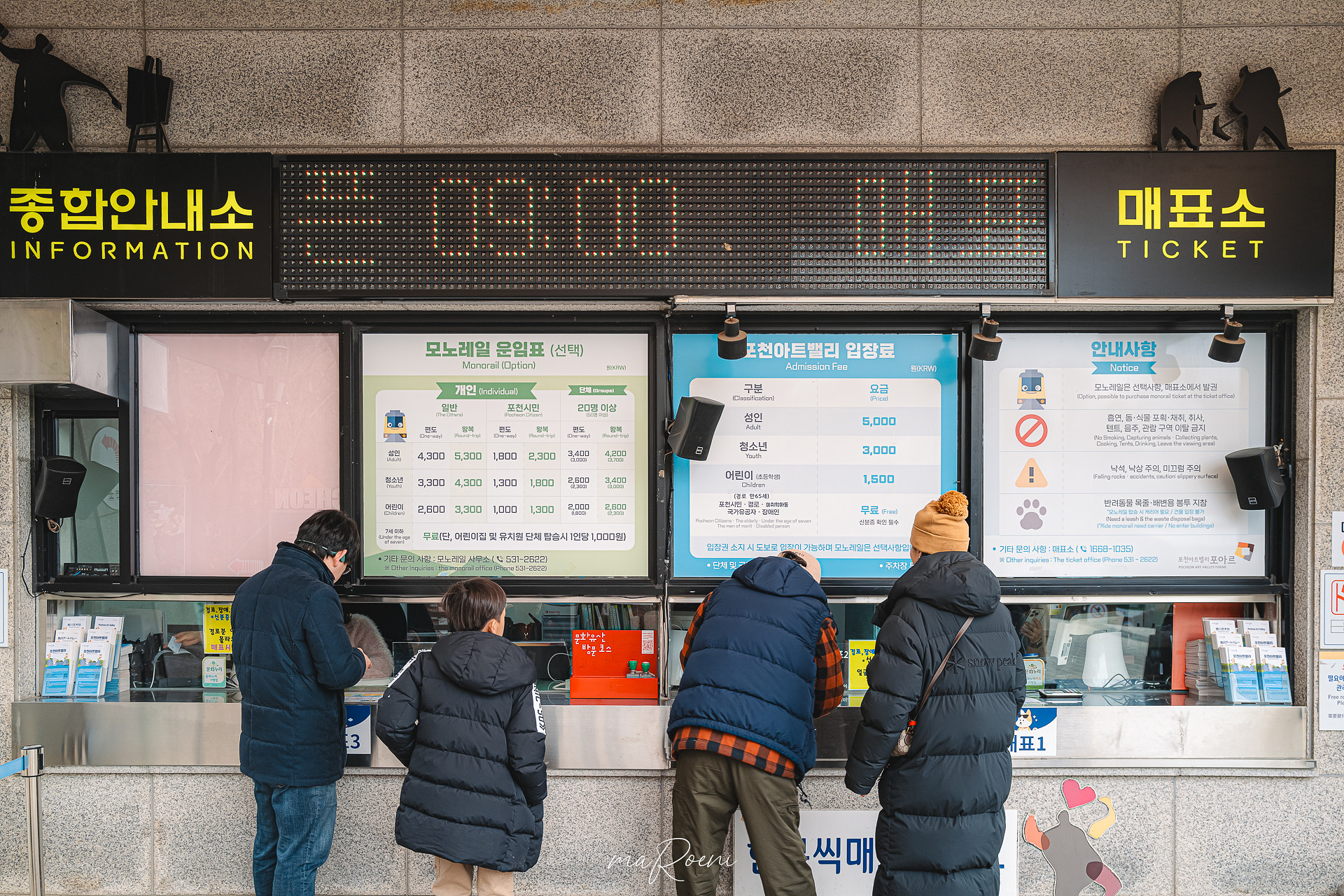 그리고 이건 별도로 운영하는 모노레일의 가격.. 이것도 역시 창렬이다. 모노레일 탑승 시간이라도 길면 이해를 할텐데 올라가는데 5분도 안 걸리는 거리를 이 비용을 지불하고 타는 건 오바라는 생각이 들었다. 그래서 우리는 모노레일을 제외하고 입장료만 지불한 후 포천아트밸리를 즐겨보기로 했다.