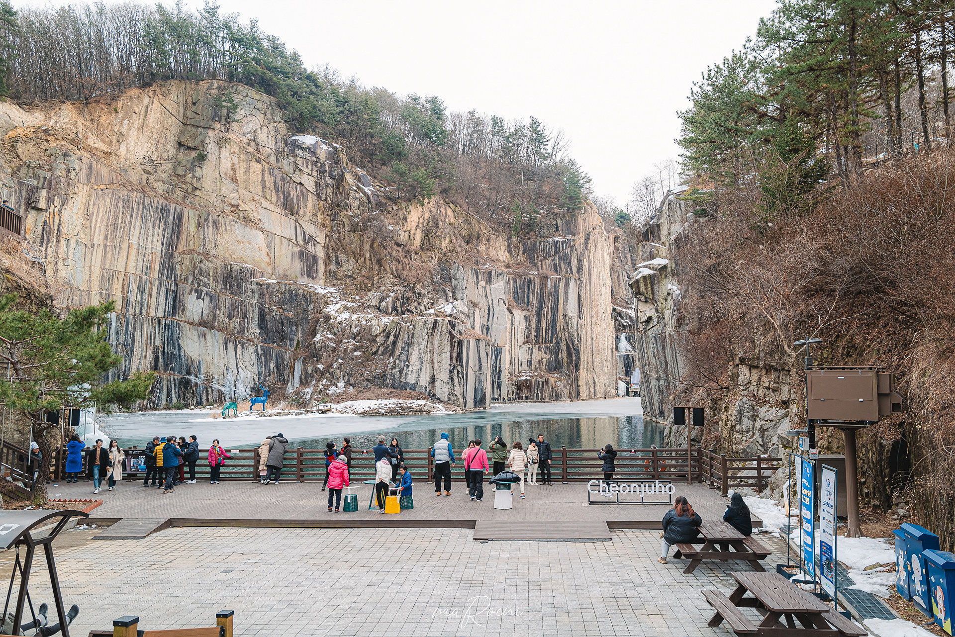 매점 좌측으로 보이는 장소는 과거 채석장으로 사용되었던 천주호다. 처음부터 물이 고여있던 건 아니고 채석장에 물을 넣어 인공연못으로 만들고 관광화한 것이 지금의 천주호라고 한다. 달의 연인 보보심경인가 무적코털 보보보에 나왔던 아주 유우우우우명한 장소라고 한다.