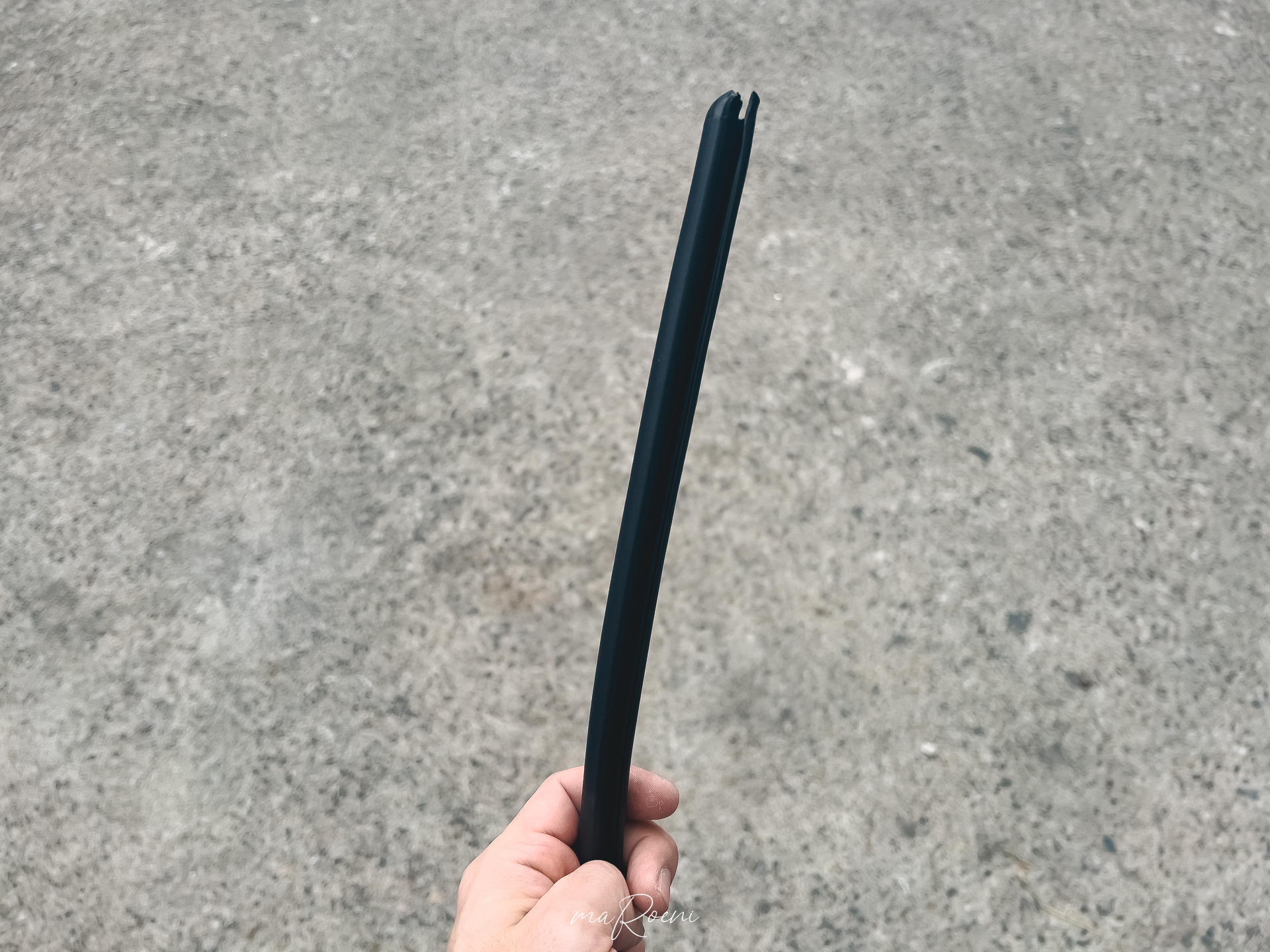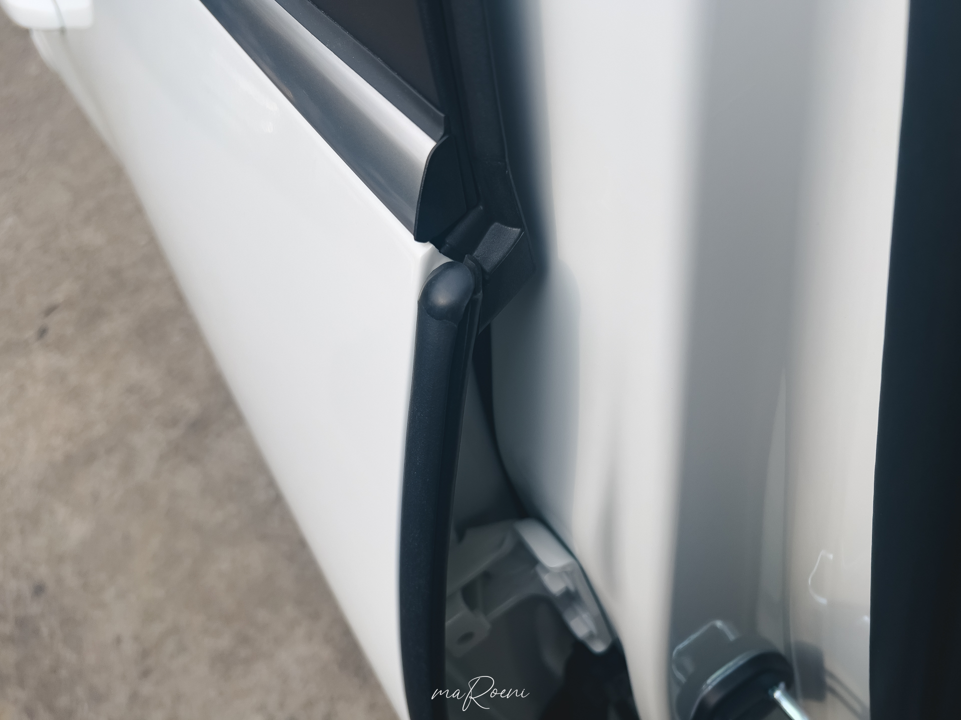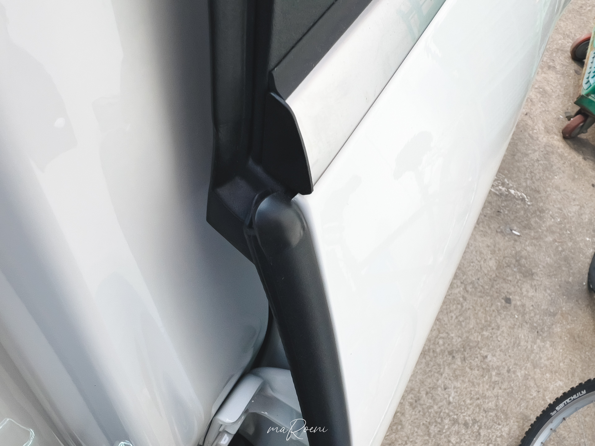 차량에 따라서, 혹은 설치 방법에 따라서 하단의 길이가 길어질 수 있다고 하는데, 나는 길이 차이가 크게 나는 것 같지 않아서 그냥 길이만 맞춰서 끼워주고 문짝을 몇 번 열었다가 닫았다가 해주니깐 사진처럼 웨더스트립 모양이 알아서 딱 맞게 변했다.