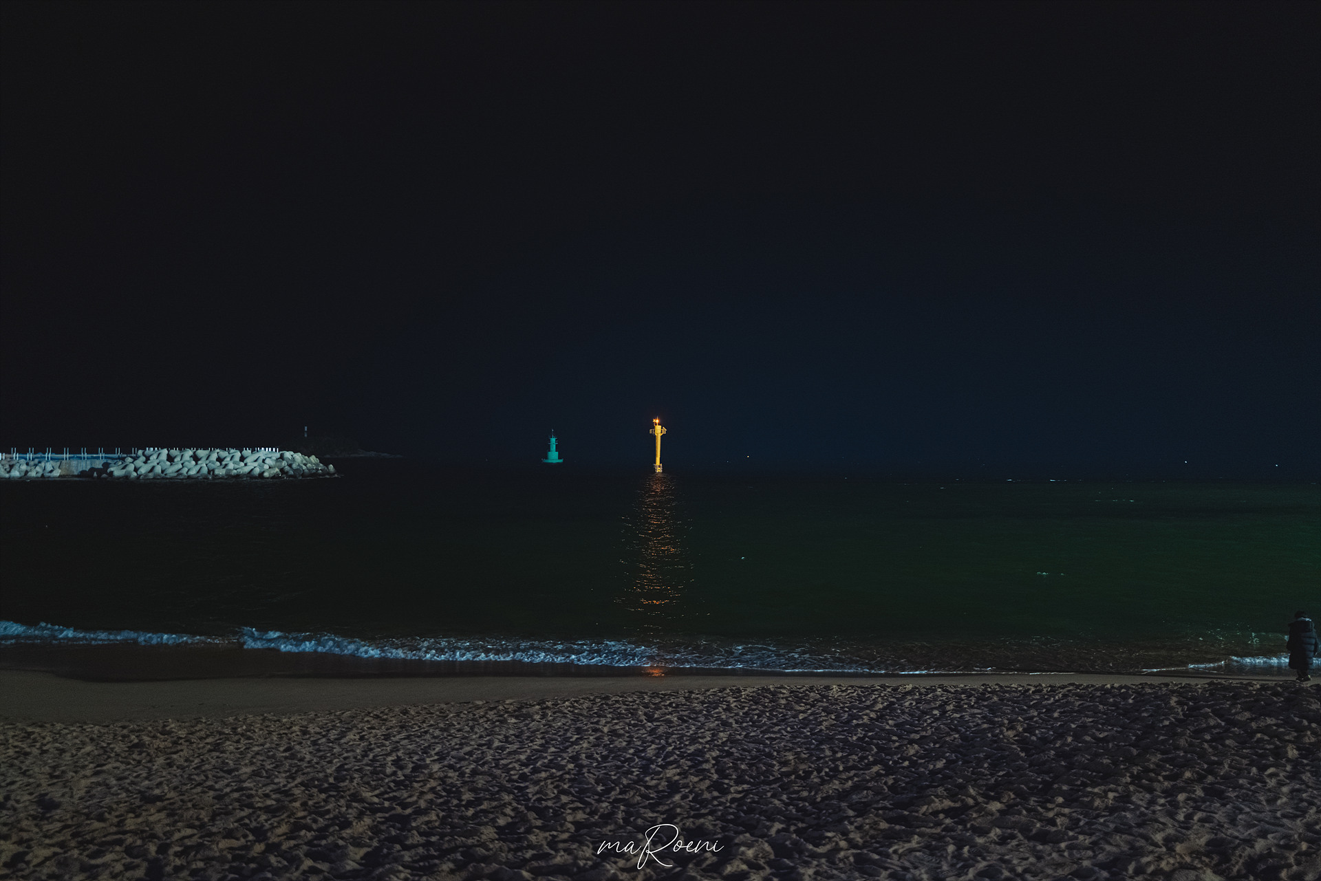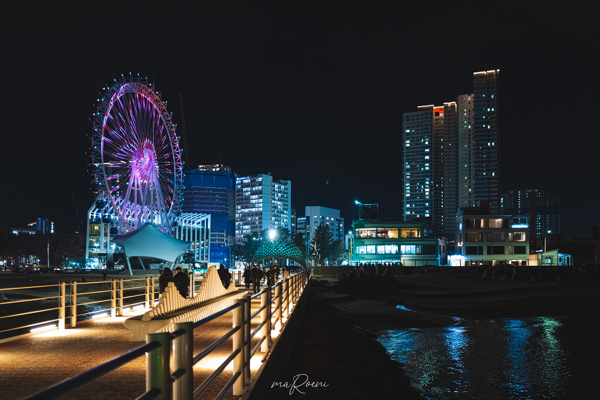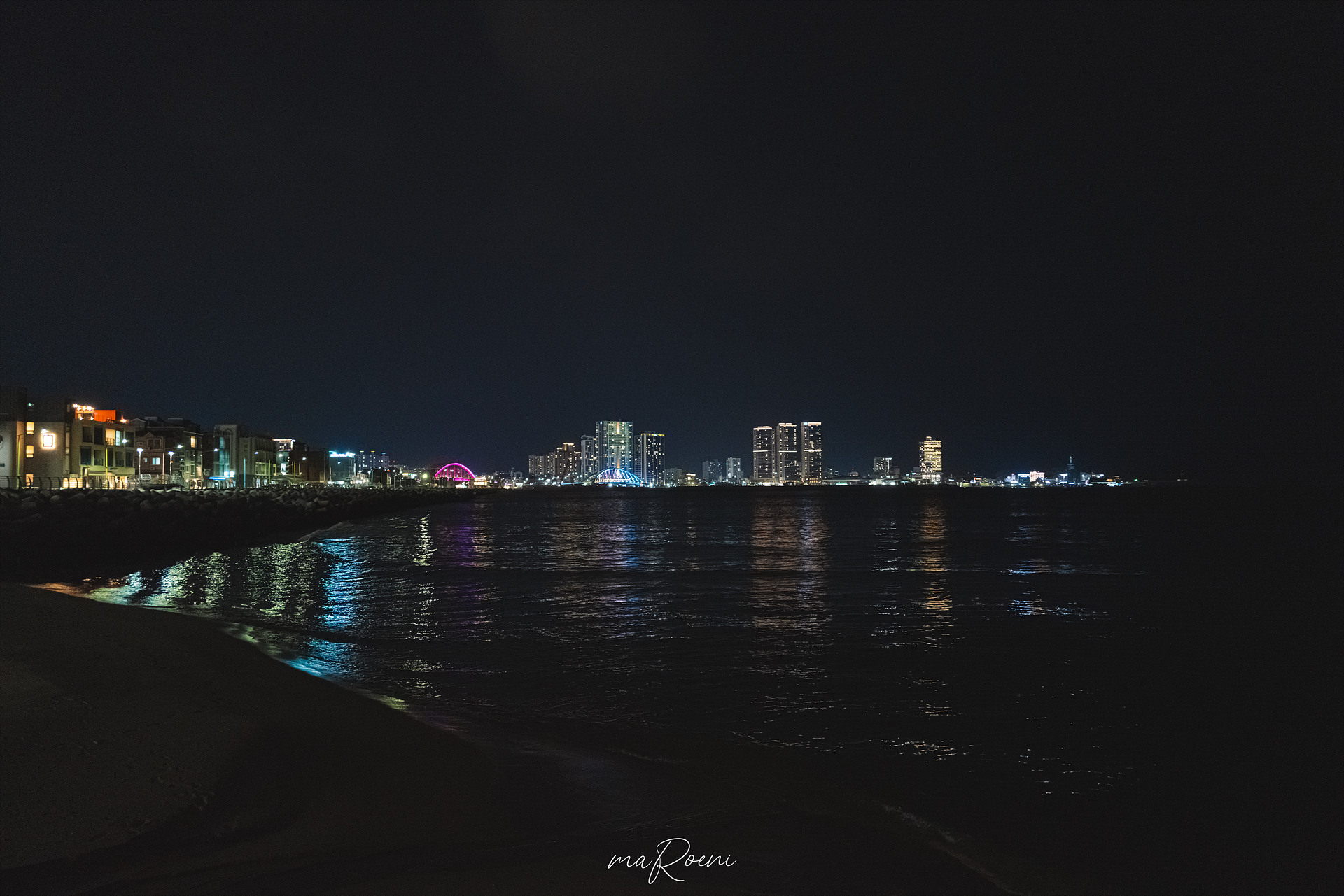 사실.. 밤바다는 다 거기서 거기다. 아무리 잘 찍어도 어렸을 때 크레파스로 알록달록 색칠하고 검정색으로 덧칠한 후 날카로운 것으로 긁어서 완성했던 스크래치(?) 그림과 비슷해 보이기 때문이다.