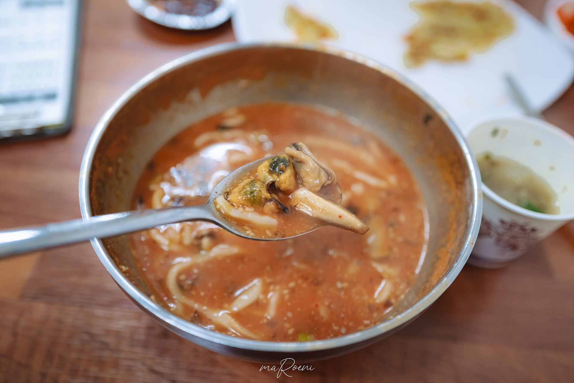 홍합장칼국수도 이것도 상당히 맛 좋았음. 고추장과 각종 재료들로 우려낸 육수에서는 키야~! 라는 말이 절로 쏟아져 나올 정도로 깊은 맛이 느껴졌으며 버섯과 홍합토핑이 매우 푸짐하게 들어있어서 먹는 내내 지루함이 느껴지지 않았음.