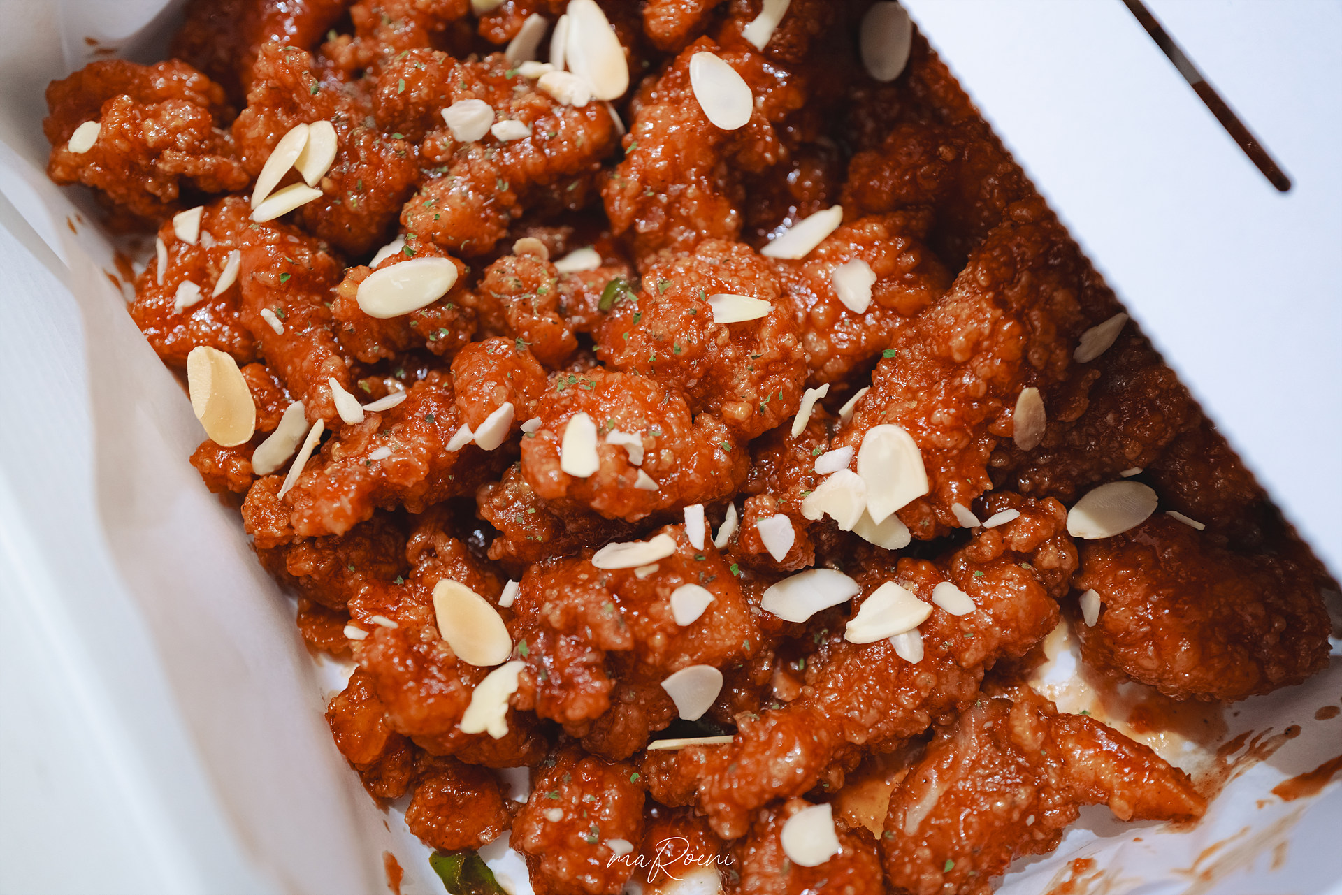 맛있는건 그 자리에서 바로 먹고 보자는 마인드라서 시장 한켠에서 바로 만석닭강정 상자를 오픈해봤다. 음;; 뭐.. 네.. 마늘후레이크를 제외하고는 뭐 어디서나 볼 수 있는 닭강정 비쥬얼이네요..