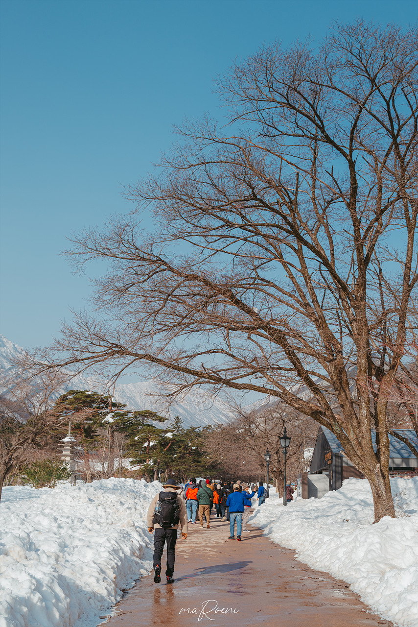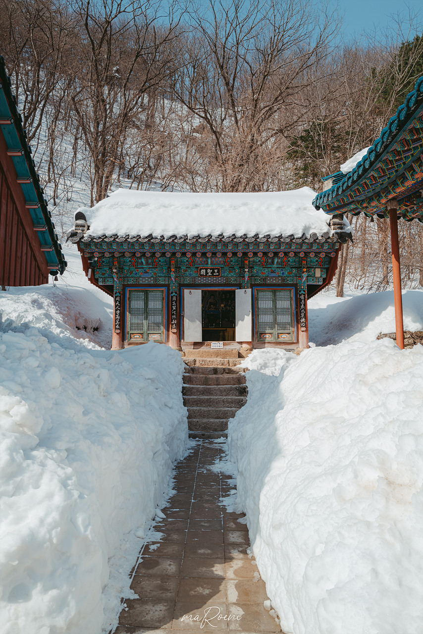 눈이 너무나 많이 쌓여있기에 어디가 중심구역인지, 어디가 사람 사는 곳인지 구분하기가 어려워서 그냥 스님의 염불소리만 하염없이 듣다가 나왔다.