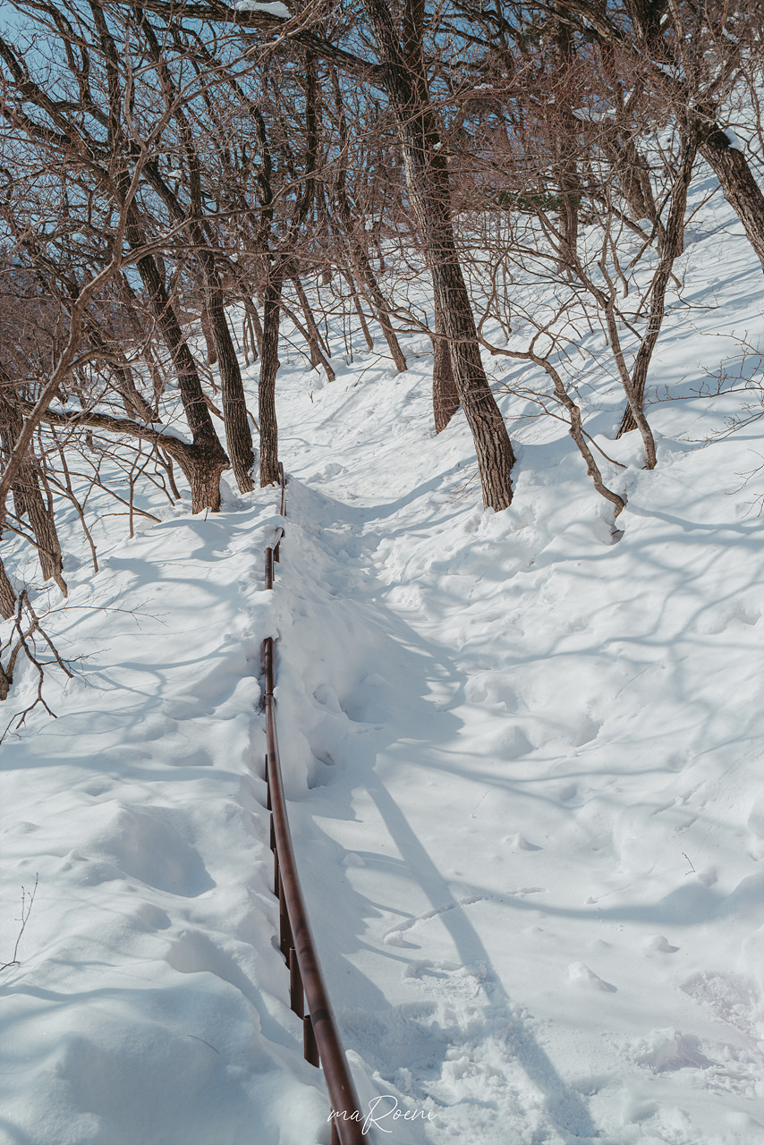 설악산 케이블카 타고 권금성만 구경하는게 끝인 줄 알았는데 신흥사라는 사찰까지 구경할 수 있어서 오랜만에 제대로 된 여행을 다녀온 기분이 들었다. 힘이 펄펄 넘쳐흘러서 내친김에 울산바위까지 찍고 오고 싶었지만 아이젠이 없으면 쉽게 오를 수 없을 것이라는 지나가는 등산객의 말씀에 아쉬움을 머금고 발걸음을 돌려 주차장으로 되돌아왔다.