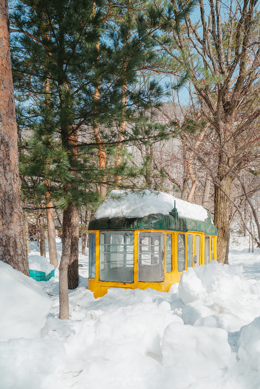 승강장 앞에는 과거에 사용되었던 케이블카였던 것으로 보이는 모형이 남아있었다. 들어가서 사진을 찍고 싶었지만 눈으로 문이 막혀있어서 아쉽게도 사진은 남기지 못했다.