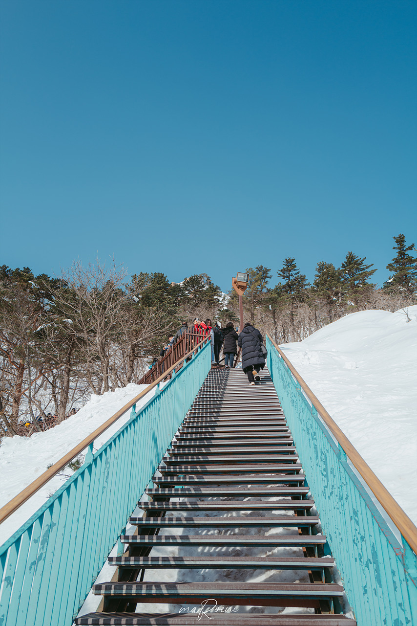 등산로가 있다고 해서 계단 위로 올라가 봤는데, 폭설 때문에 권금성 등산로를 이용할 수 없게끔 막아뒀다. 열어뒀어도 아이젠이 없어서 불가능했을듯?