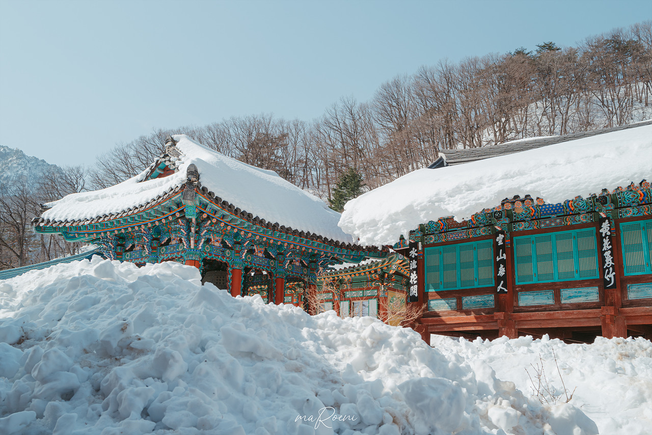 여름과 가을의 사찰은 많이 둘어봤는데, 겨울의 사찰은 처음 본다. 설악산의 웅장한 모습과 온화한 모습의 사찰.. 여기에 향냄새와 음질 빵빵한 스님의 불경까지 더해지니 이 감성을 어떻게 설명할 수 있을까?