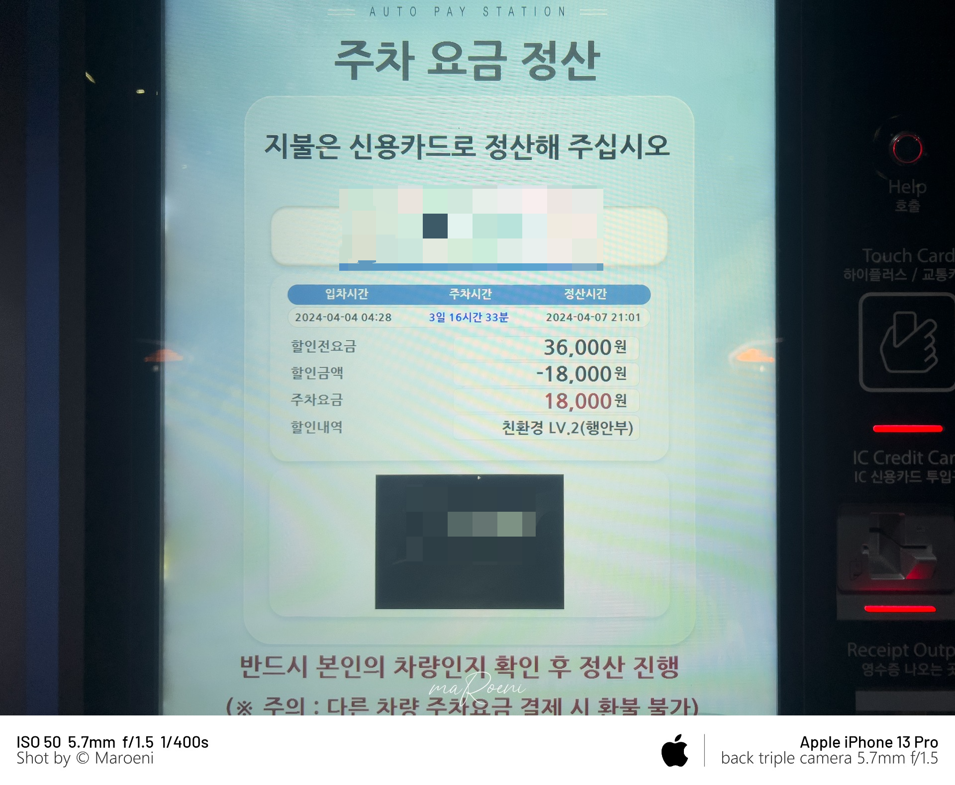 생에 처음으로 하이브리드 혜택을 받아본 나... 얼마나 감동이었는지! 36,000원에서 50% 할인받고 18,000원이 나왔다. 몇만원 나올 줄 알고 차를 가지고 갈까 버스를 타고 갈까 고민을 정말 많이 했었는데 이렇게 저렴해버리면 차를 안가져갈 이유가 없지 ㅋㅋ