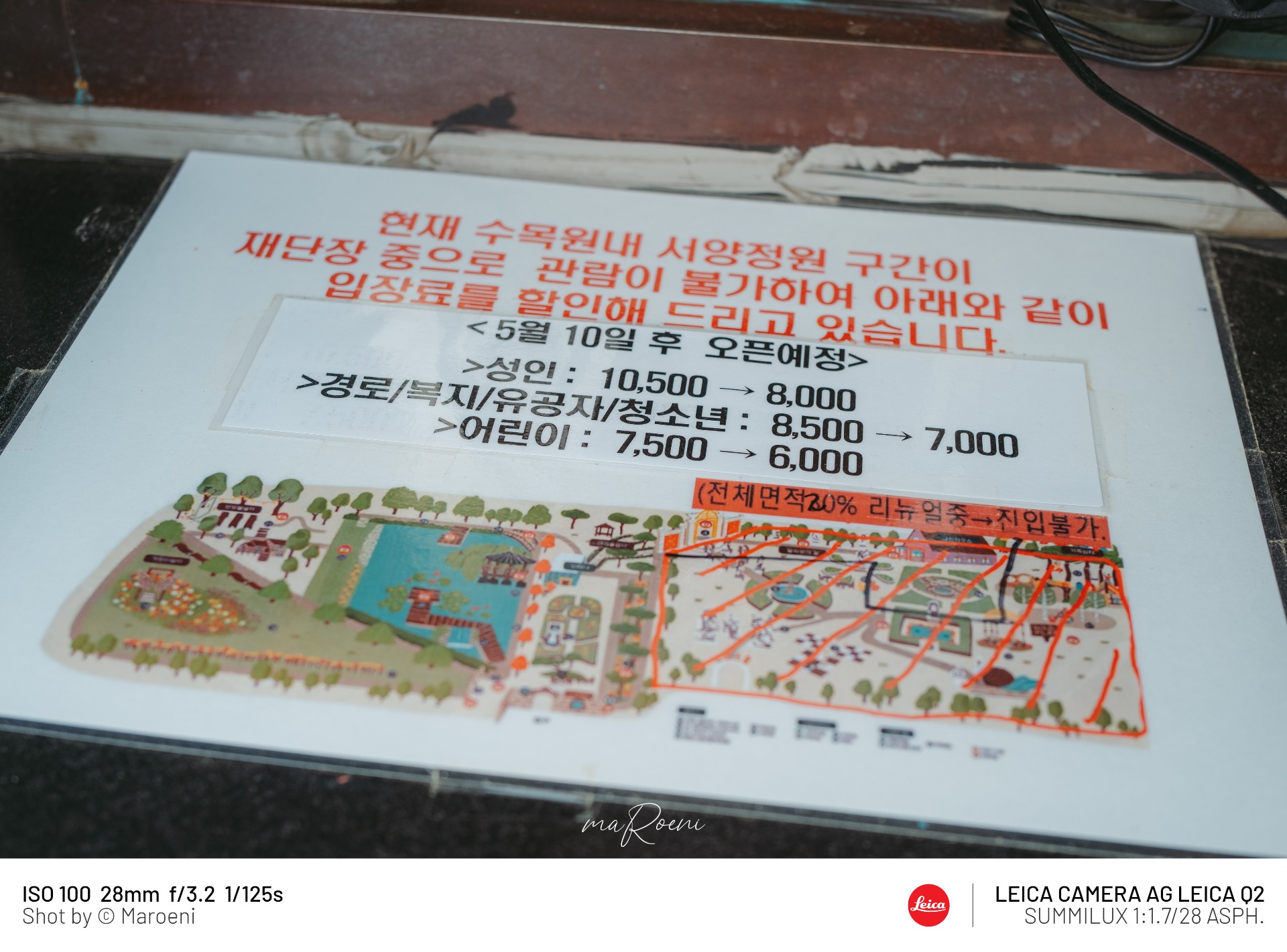 벽초지수목원의 요금은 다음과 같다. 그.런.데! 우리가 찾아간 날은 <서양정원>구간, 즉 전체면적의 20%를 재단장하고 있어서 진입이 불가능하는 이유로 입장료를 할인받았다. 수목원치고 기존 가격이 너무 창렬이라서, 할인을 받아도 딱히 저렴하다는 생각은 들지 않았다.