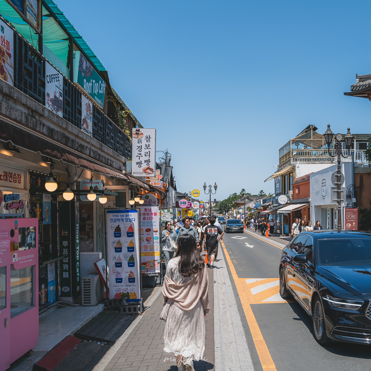 카페음료 수혈 끝나고 다시 황리단길 메인스트릿으로 컴백. 낮에는 사람들이 없어서 돌아다니기 편했는데, 오후쯤 되니깐 사람들 바글바글하지.. 또 이 좁은 도로로 차는 어찌나 많이 돌아다니는지.. 정말 어지러웠다.