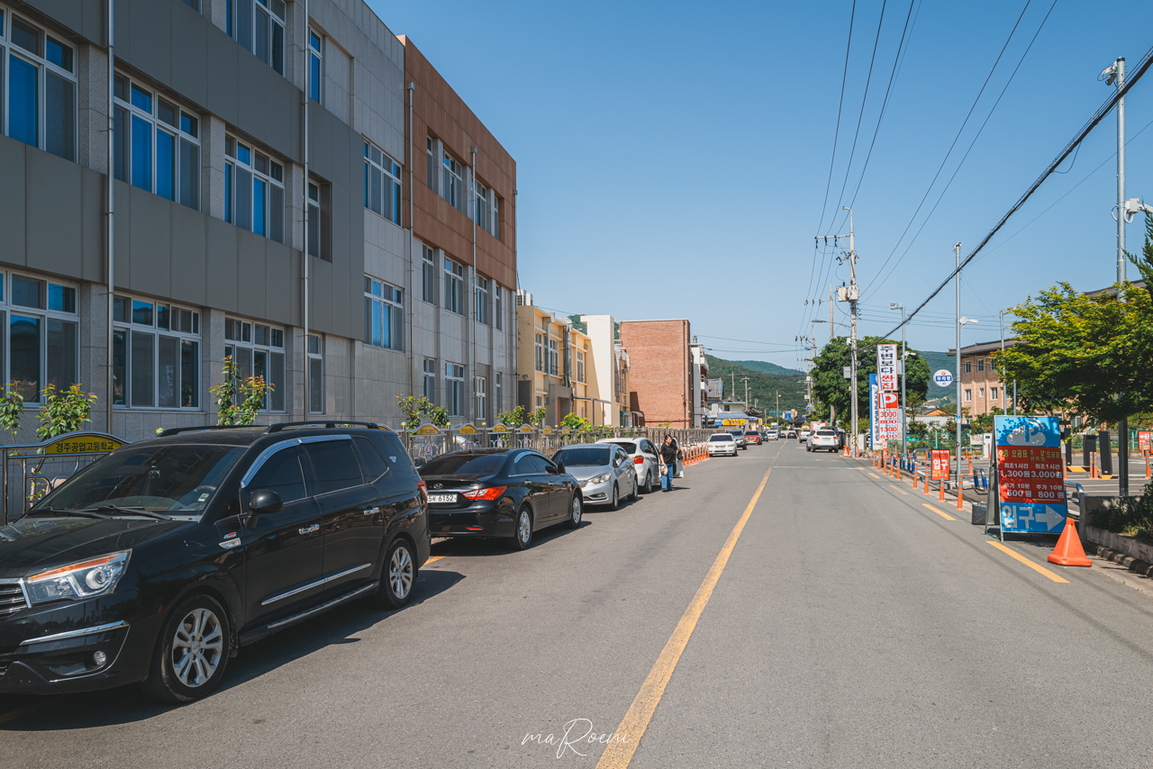그리하여 황리단길 무료주차장을 찾던중! 경주공업고등학교와 경주가정교회 사이 골목에 주차를 할 수 있다는 것을 발견! 냅다 자리가 생겼을때 주차해버렸다. 황리단길 무료주차장 위치는 경주 공업고등학교를 찍고 후문쪽에 주차금지구역만 피해서 주차를 하면 되시겠다. 참고로 단속 없고 카메라도 없다.