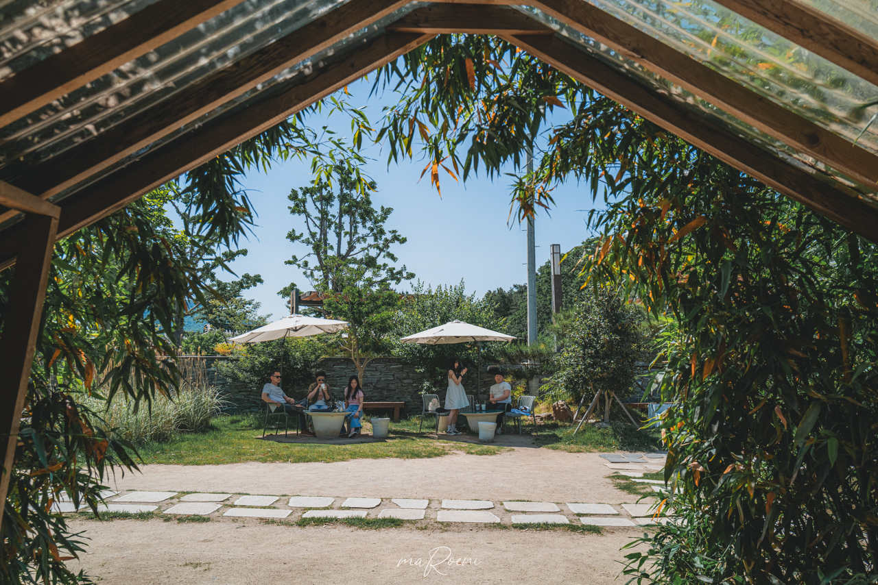 넓은 정원 끝에 커피를 마실 수 있는 한옥 인테리어의 매장. 실내는 엄청 좁아서 사진을 찍을 수도 없었다. 카메라를 들어올리면 바로 사람들 얼굴이 보여서;; 실내자리랑 실외자리가 있는데, 사진처럼 실외자리는 그냥 꽉참. 너무 인기가 많다.