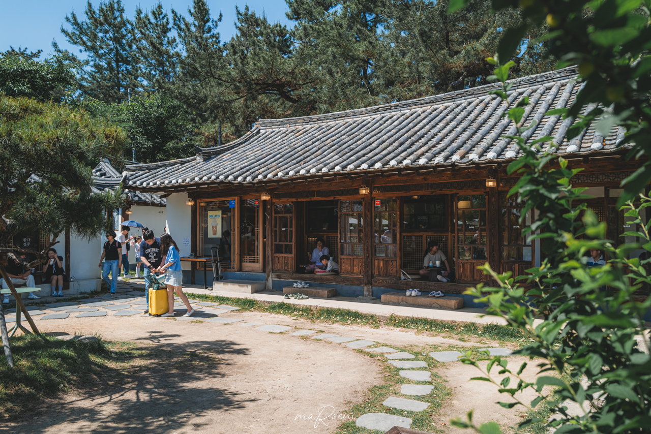 넓은 정원 끝에 커피를 마실 수 있는 한옥 인테리어의 매장. 실내는 엄청 좁아서 사진을 찍을 수도 없었다. 카메라를 들어올리면 바로 사람들 얼굴이 보여서;; 실내자리랑 실외자리가 있는데, 사진처럼 실외자리는 그냥 꽉참. 너무 인기가 많다.