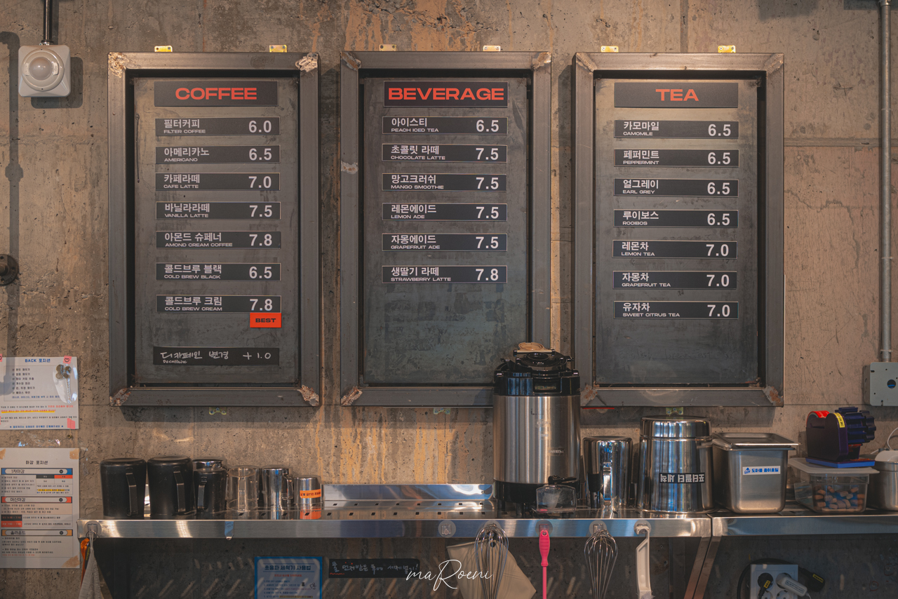 단양 카페산의 음료 메뉴표다. 가격은 뭐.. 자리값이라고 생각하면 그냥저냥 무난쓰하다.