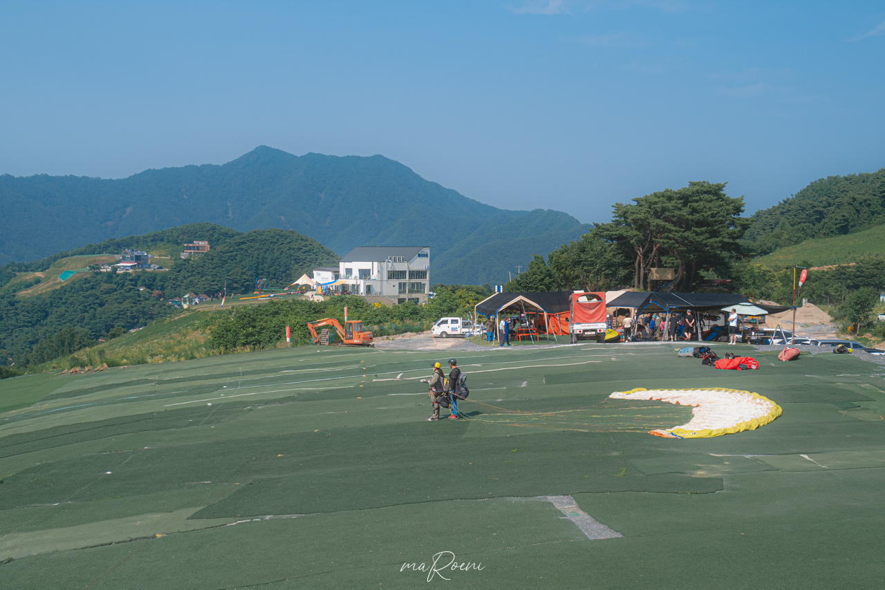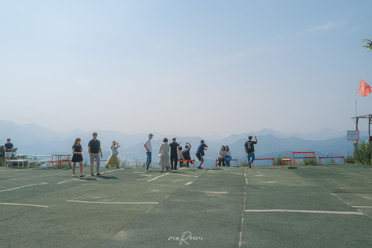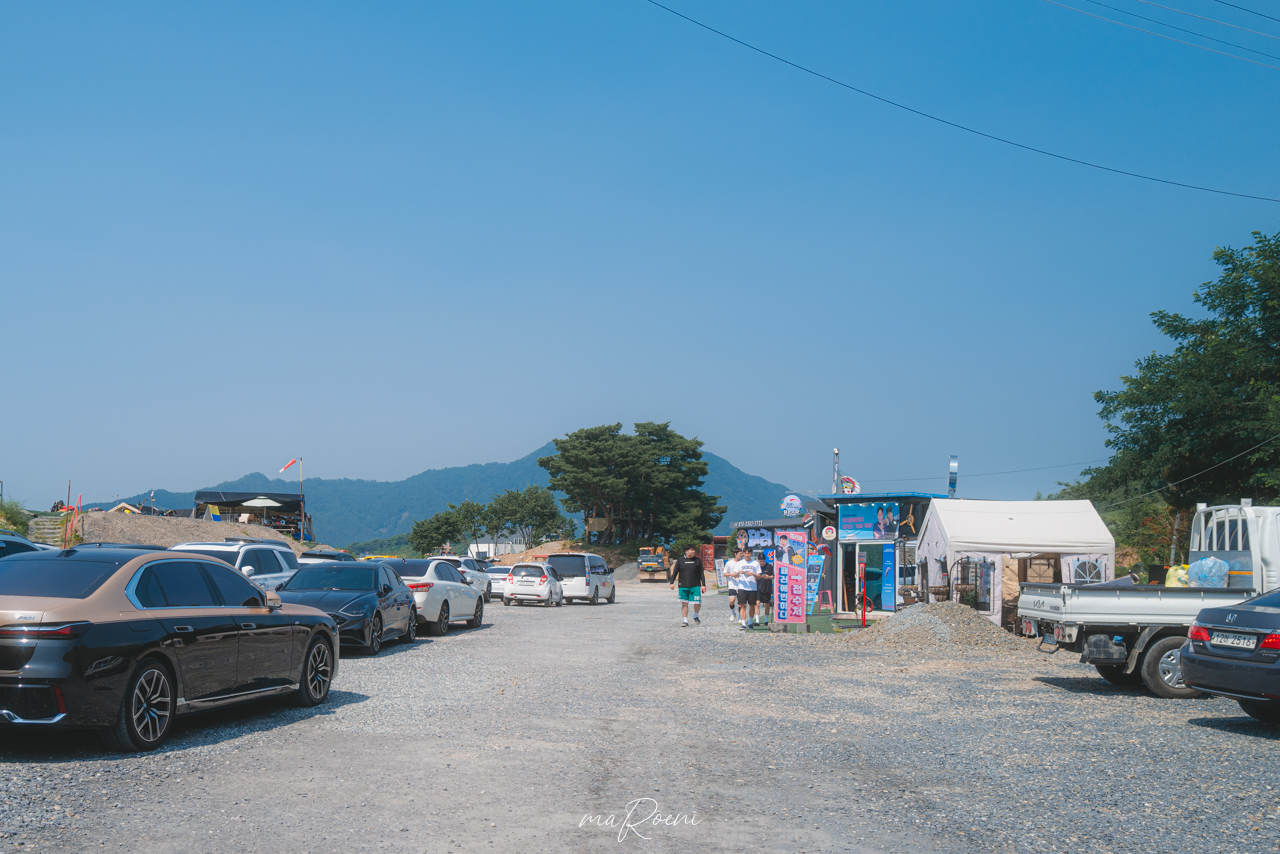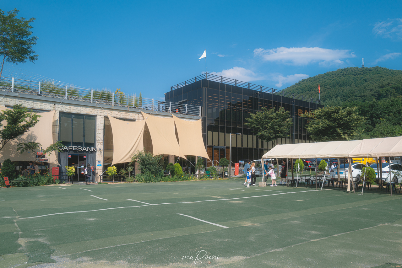 카페산 주차장은 매~~~우 넓다. 카페치고 이렇게 넓은 주차공간을 사용하는 카페가 또 있나 싶을 정도로 정말 넓었다. 카페 앞에 주차장이 있긴 한데, 이곳이 만차일 경우엔 패러글라이딩 업체가 모여있는 2주차장을 이용해도 된다. 카페산을 이용하는 사람들은 무료로 이용할 수 있다고 써있는데, 주차요원이 있는 것도 아니고 차단기가 있는 것도 아니라서 따로 확인할 방법은 없다.