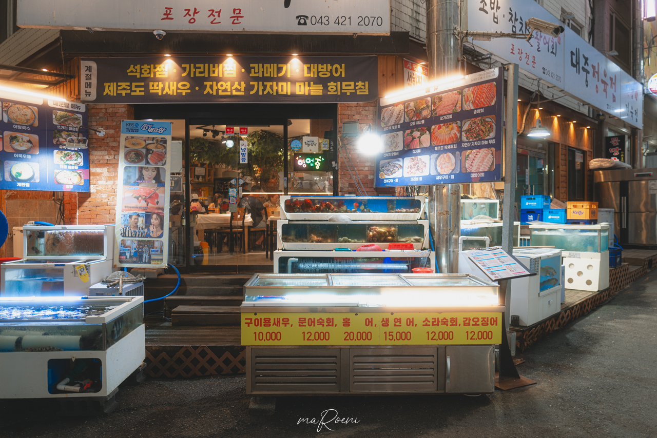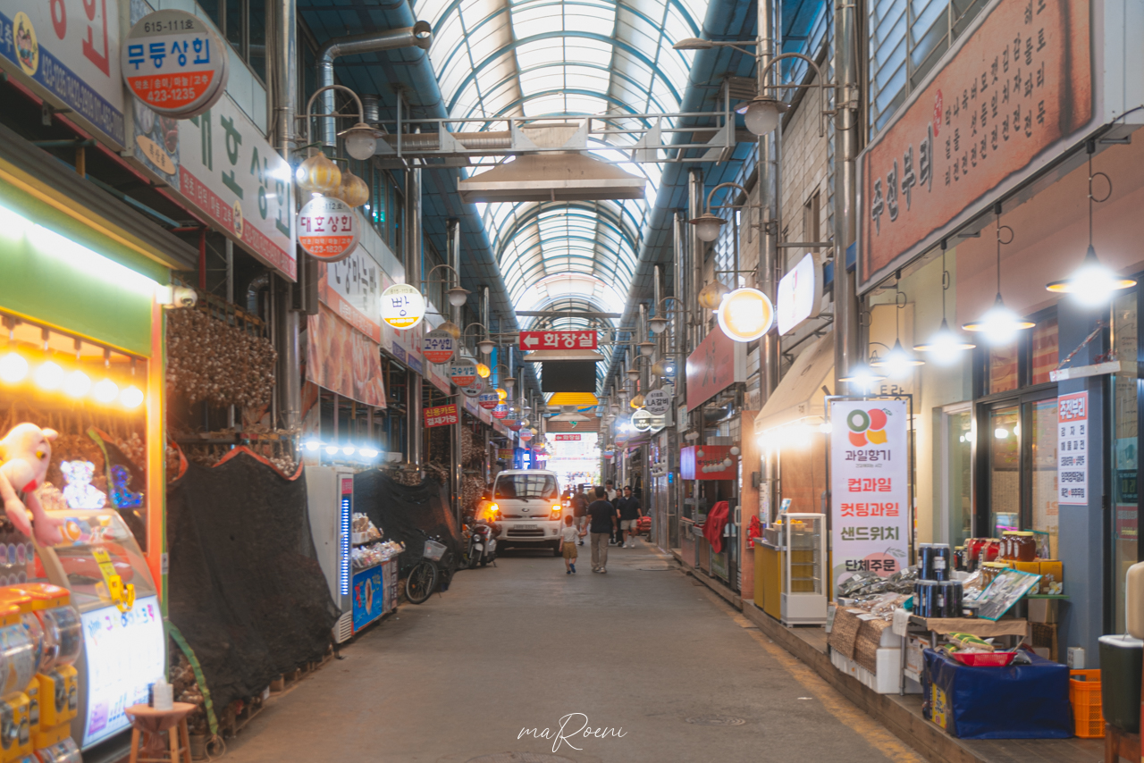 주차장은 하상주차장을 써야 하지만, 우리는 적당히 빙빙 돌다가 단양초등학교 앞에 자리가 났길래 호다닥 알박기를 시전하고 5분 걸어서 구경시장으로 들어갔음.