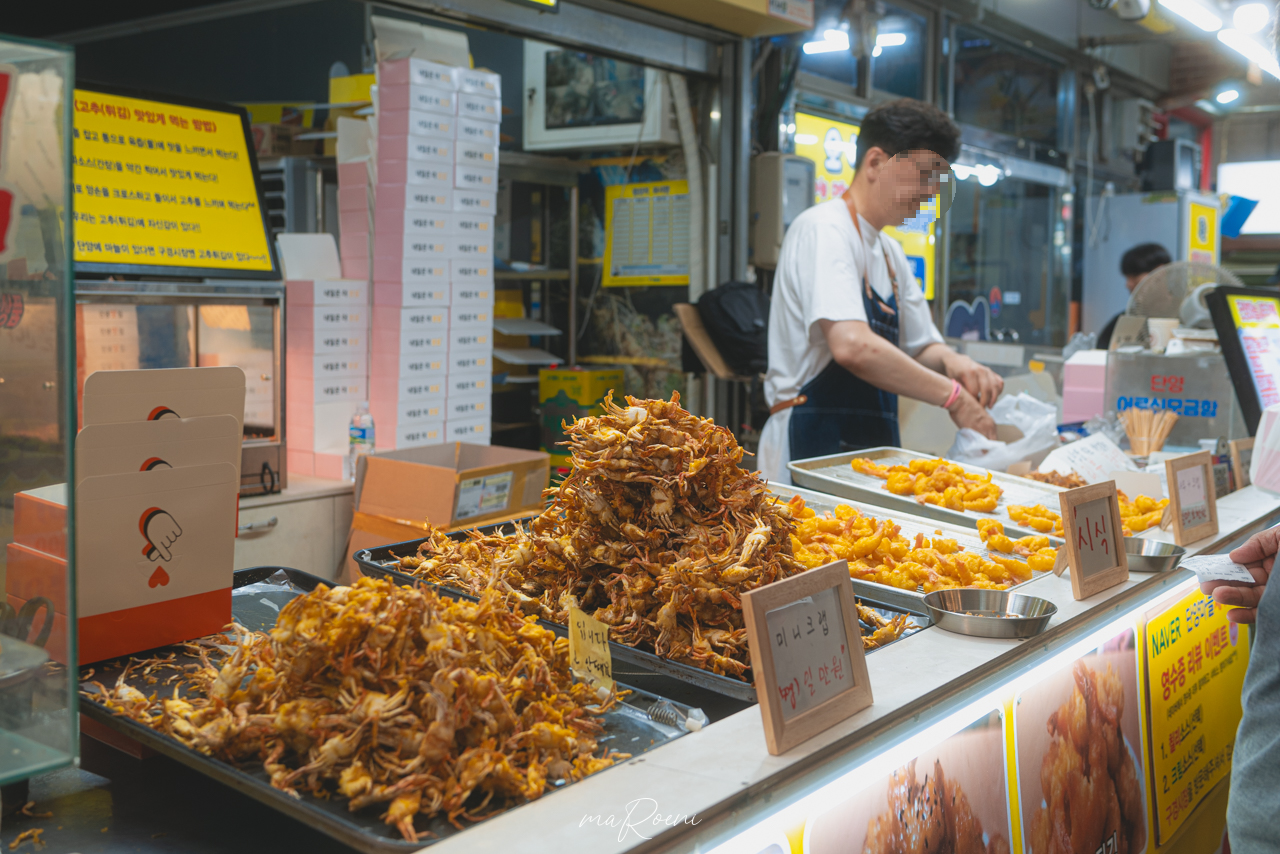 우리 동네 시장에서는 볼 수 없는 미니크랩튀김! 튀김을 좋아하는 1인으로 콜레스테롤 수치만큼은 누구에게도 지지 않을 자신이 있지만, 크흠.. 가격이 가격인지라 이번만큼은 참아보기로 한다.