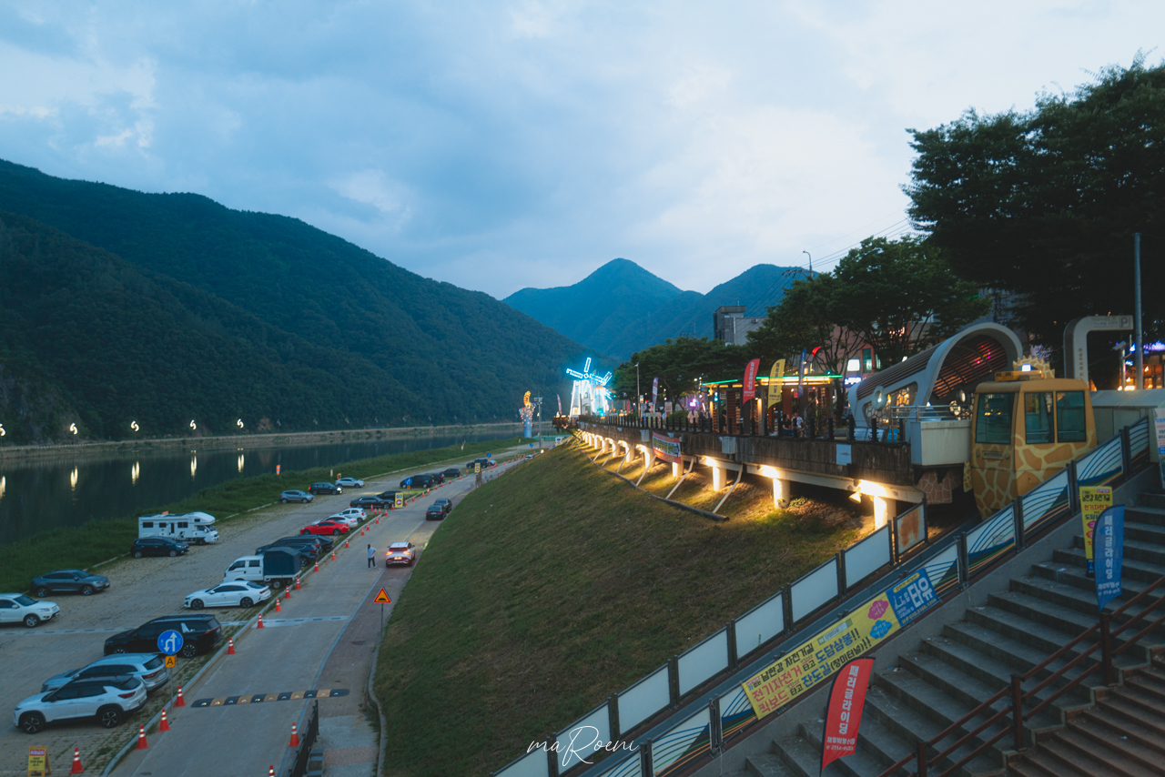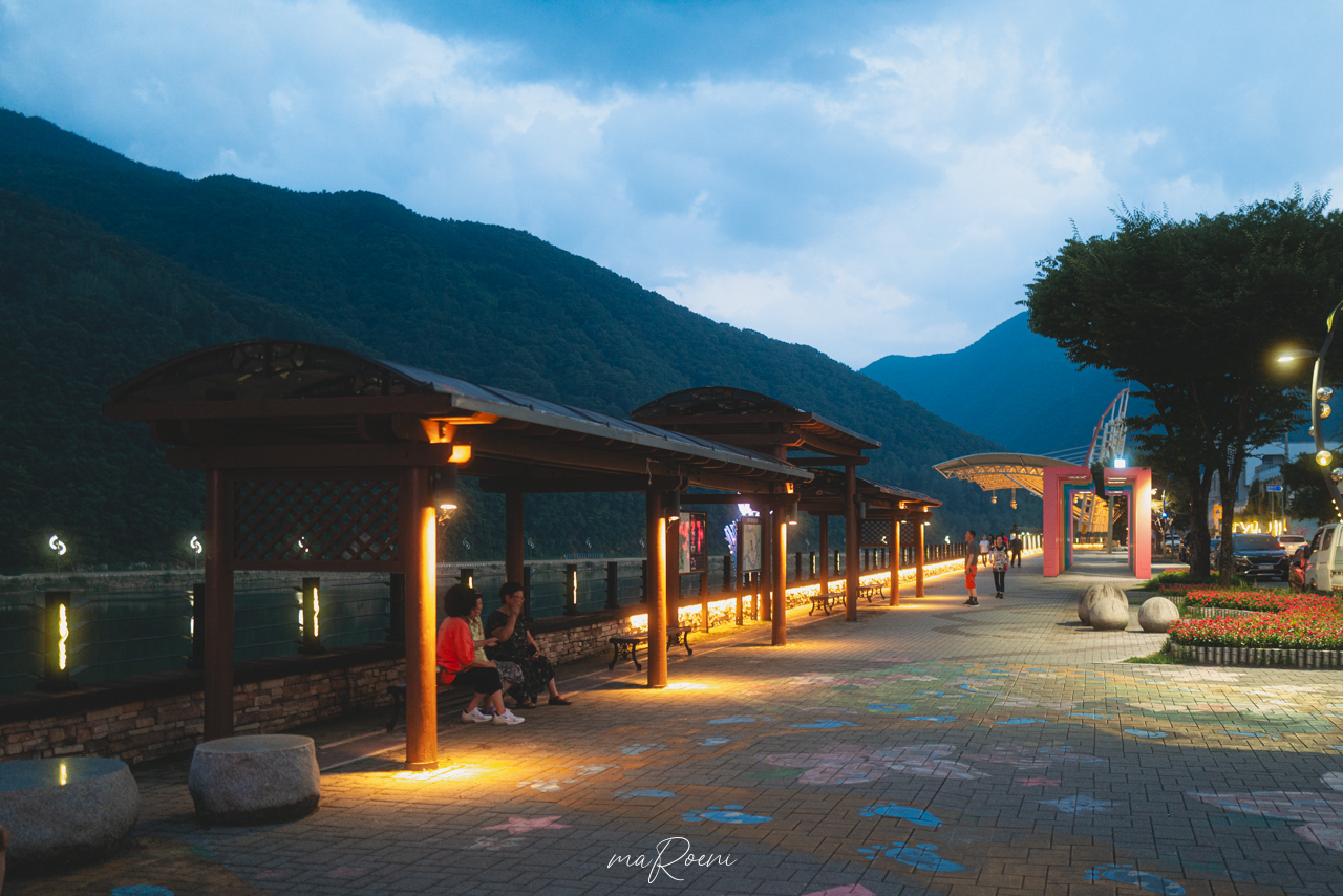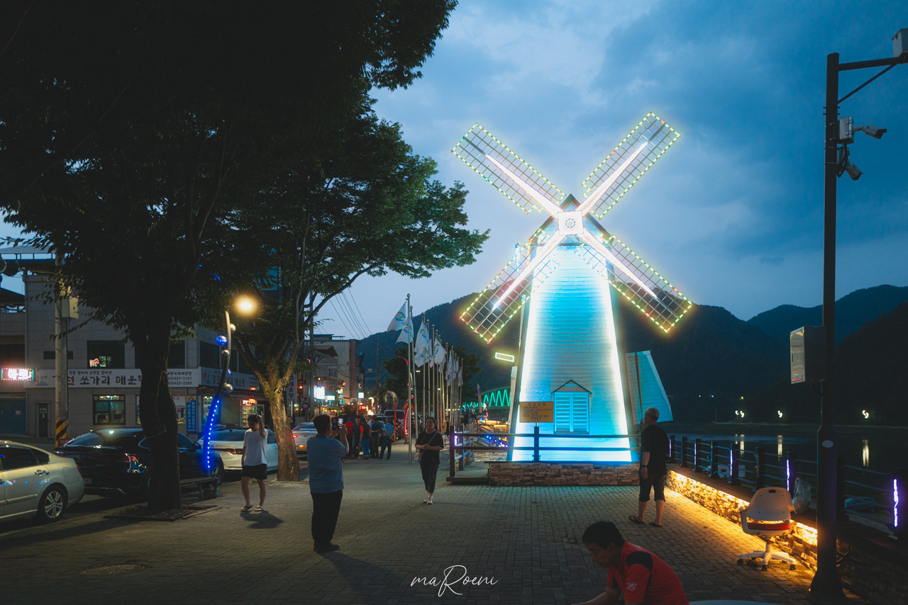 단양 구경시장 앞 주차장에는 남한강 물줄기를 따라 수변공원이 조성되어 있는데, 야간에는 나방형님들께서 좋아하실만한 LED쇼가 시작된다. 다른 블로거에서는 이 풍차..?가 필수 인증코스라던데.. 크흠;; 얼마나 볼게 없었던 것인가..