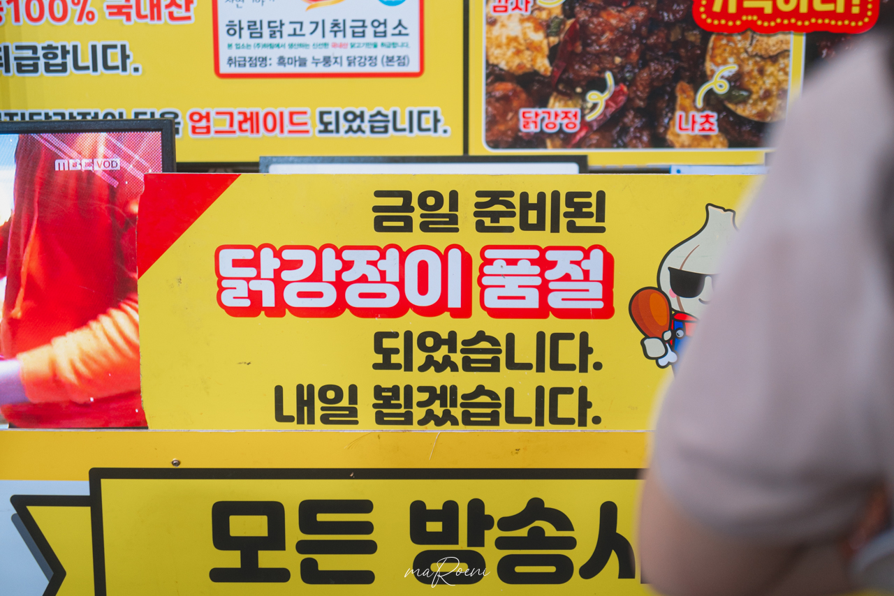 아 이런 개O발.. 일찍 간다고 갔는데도 닭강정 품절이란다.. 근데 직원들은 왜 닭을 튀기고 있는것인가? 궁금해서 물어보니 예약손님 닭을 튀기고 있는 중이라고 하셨다.. 주문하셔도 내일쯤 받아보실 수 있을 거라는 직원분 말씀에 눈물을 머금고 돌아갈 수밖에 없었다. 여기까지 왔는데.. 이걸 못 먹고 가네ㅋㅋ