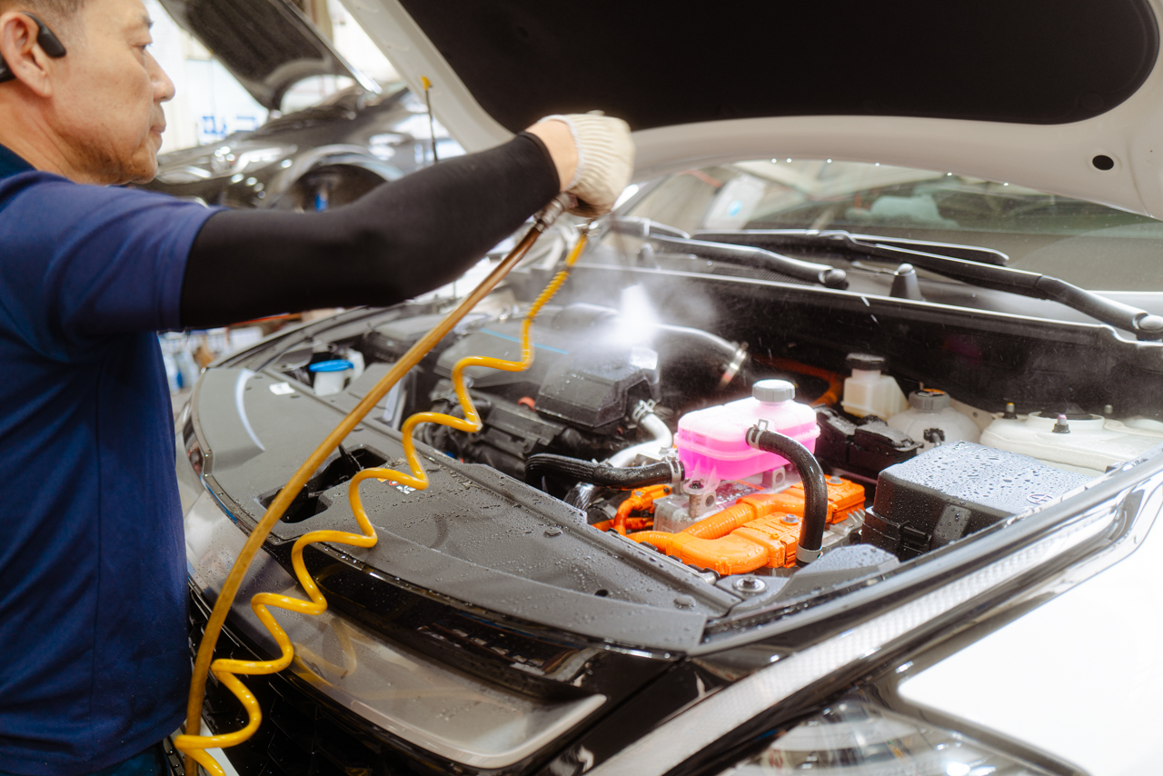 그리고서는 냅다 엔진룸에 고압수를.. 이런건 유튜브로 보긴 봤었지만 실제로는 첨 봤음.. 세차할 때 조심스럽게 엔진룸까지 걸레로 벅벅 닦았는데.. 고압수라니..?!