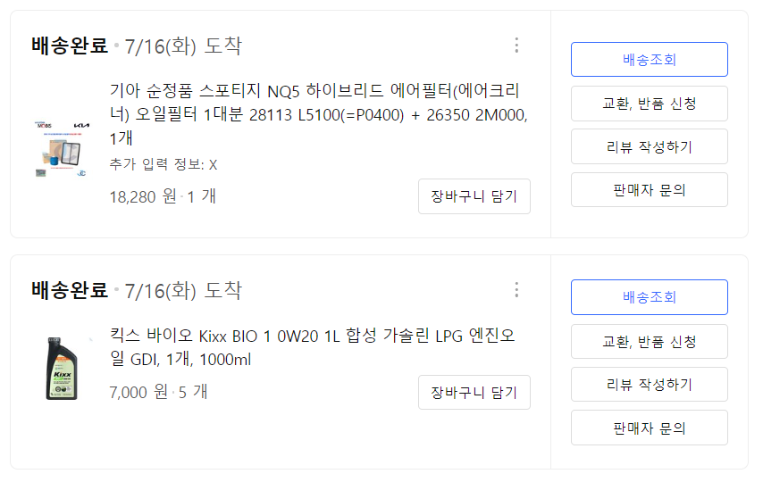 스포티지 하이브리드 엔진오일을 공임나라에서 교환하기 전에 따로 구매해야할 물건들이 있다.
