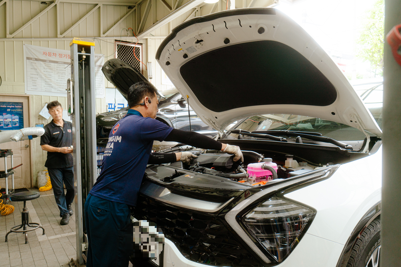 기존 스포티지 하이브리드 NQ5 엔진오일을 제거하시면서 누유는 없는지 체크까지 해주셨다. 다행하게도 나의 스붕쨩은 엔진오일이 증가하는 이슈도 없었고 누유역시 없었다.