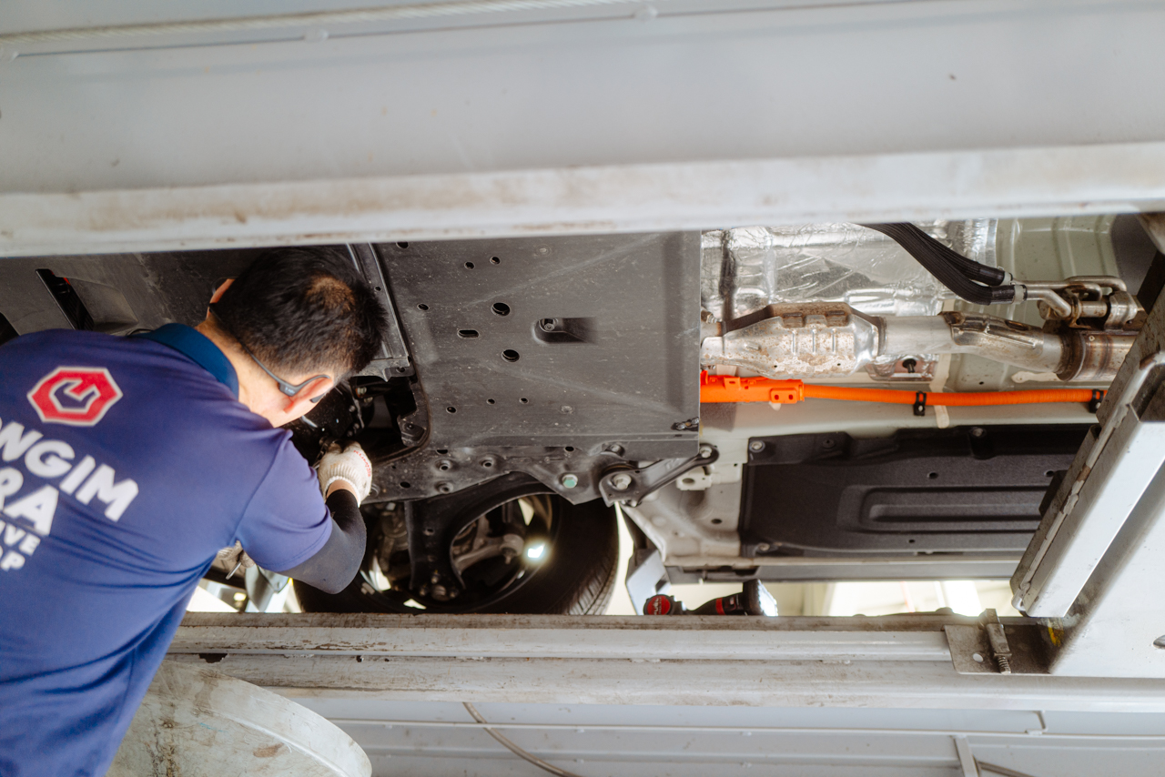 스포티지 하이브리드 NQ5 엔진오일 교체를 진행하면서 차 아래는 도대체 어떻게 생겼을까 하는 궁금증이 생겨서 함 봤는데 아래엔 딱히 별 볼 일이 없었다.