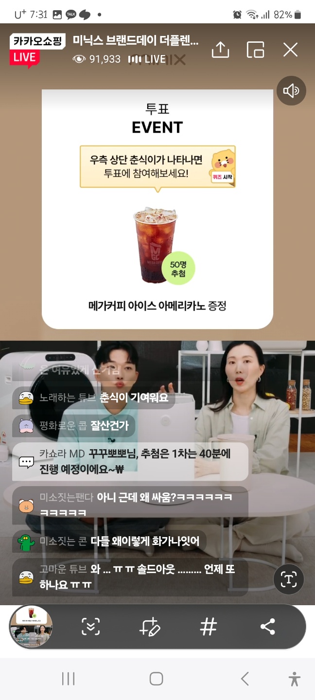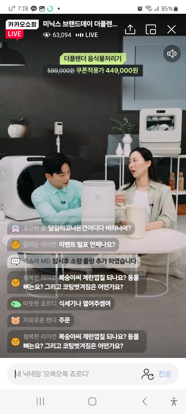그리고 D-Day.. 방송이 시작되자마자 나는 바로 결제를 진행했다. 이것저것 할인받으니 449,000원이었다. 놀랍게도 미닉스 더 플렌더 음식물처리기는 방송 시작 후 약 20분만에 품절이 되었다. 한시간동안 방송을 진행했던 것 같은데 20분만에 품절이 되어버린다니.. 추가 입고 버프까지 받았는데도 불구하고 품절. 그 인기가 정말 대단할 따름이다. 뒤늦게 들어온 약 10만명의 시청자들은 왜 이렇게 빨리 팔리냐며 화까지 내더라. 댓글보는게 어찌나 재미있던지 끅끅...