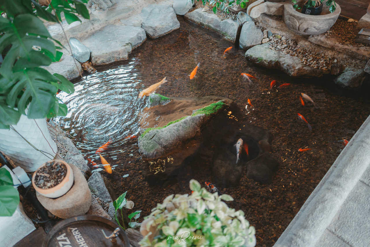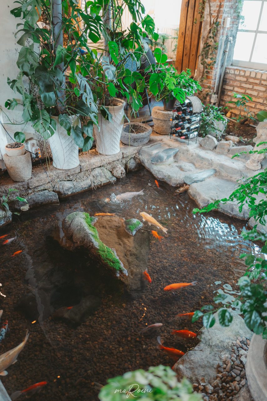 1층 중심부에서는 물고기들이 헤엄치는 작은 연못이 있고 그 위로 짧은 징검다리가 하나 있는데, 여기 감성이 진심 미쳤다. 와! 쩔어!라는 느낌까지는 아니더라도, 아기자기하고 빼곡하게 채워져 있는 실내에 이런 공간감이 더해지니 뭐랄까... 인테리어 게임 고수를 보는 느낌이라고 해야 하나?