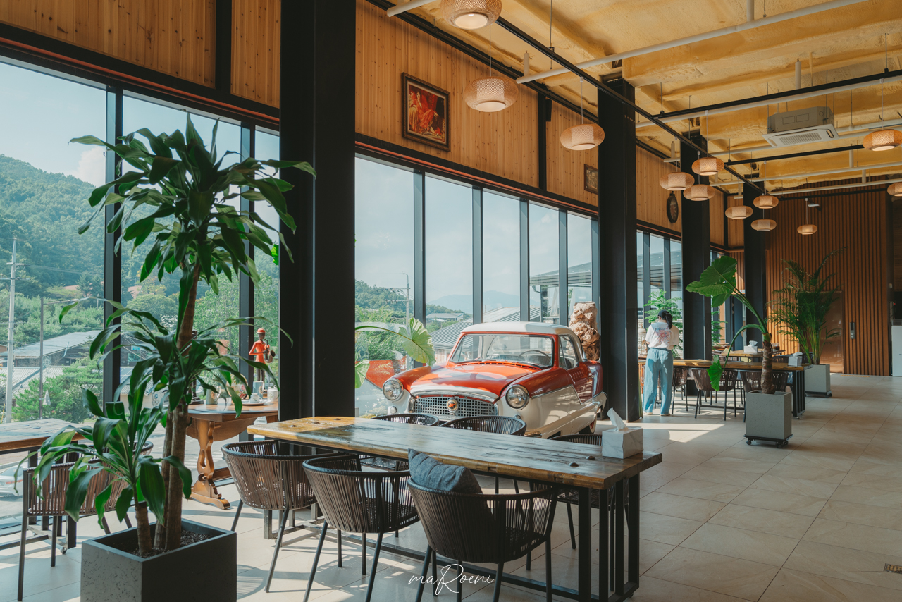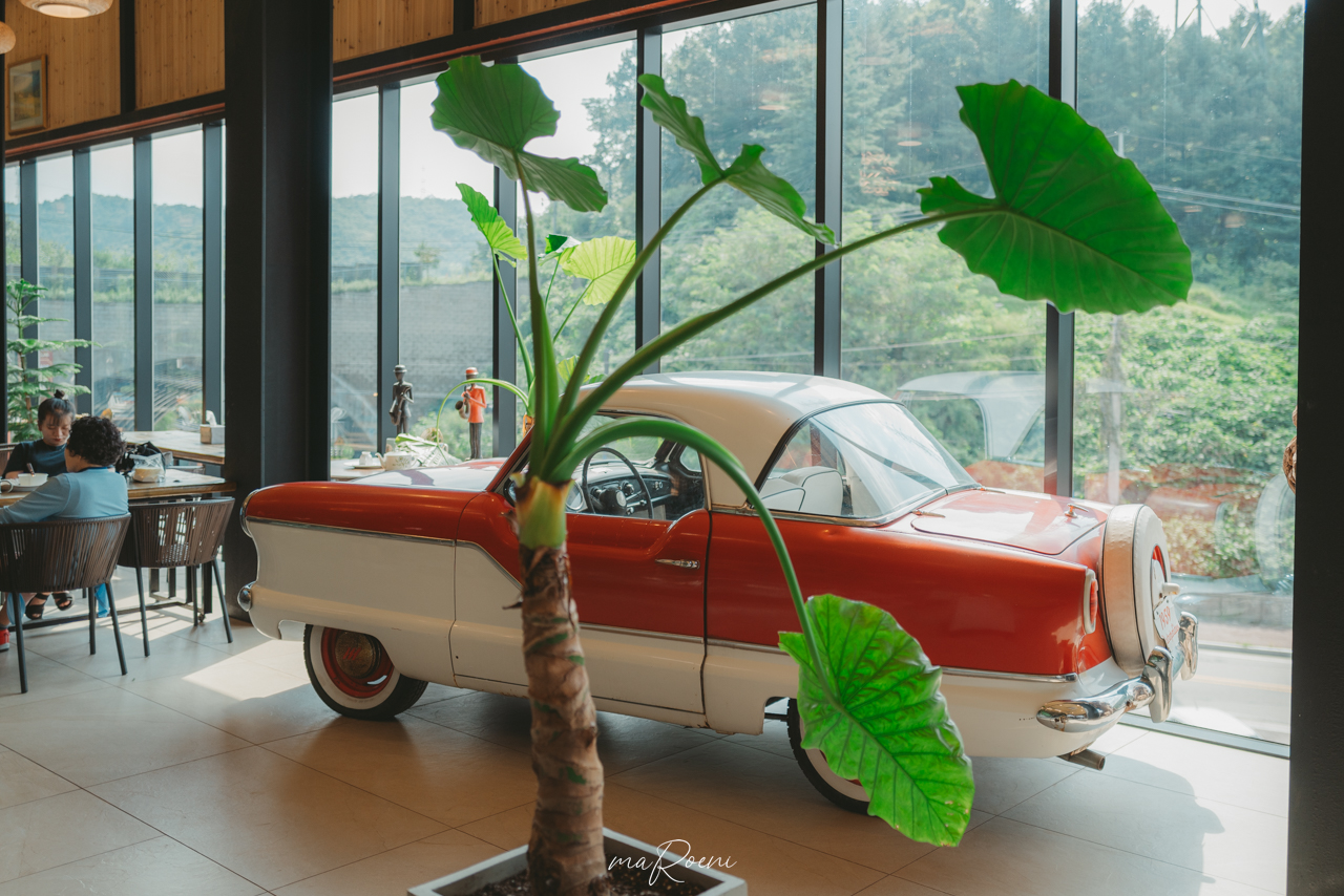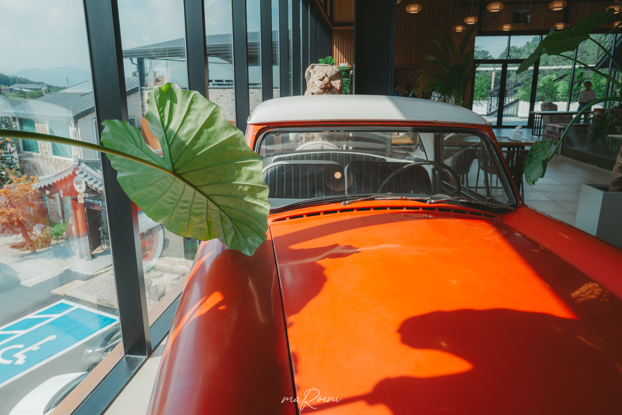 창밖에서 보였던 빨간색 클래식카. 이 커다란 공간 속에서 이 작은 소품 하나가 우리를 카페로 이끌었다.