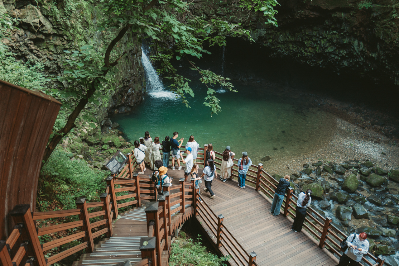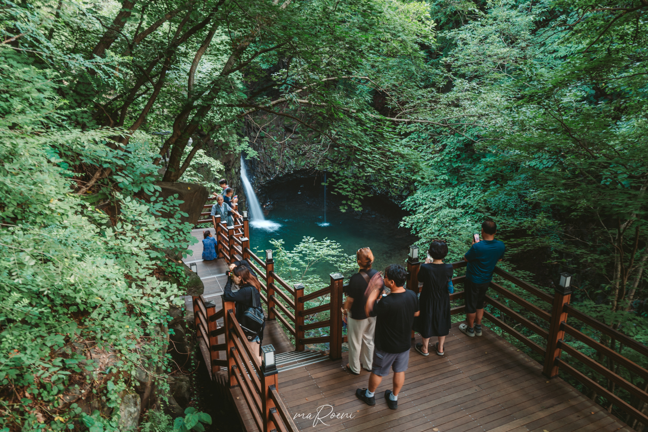 신비로우면서도 오묘한 기분이 드는 비둘기낭폭포. 오는 길에 차 한 대도 없었어가지고 이런 외진 곳까지 누가 올까 싶었는데, 의외로 여기서 캠핑하시는 분들도 많았고 관광버스를 타고 투어를 온 외국인들도 상당히 많았다. 여기까지 오다니 열정이 참 대단한 외국인이라는 생각이 들었다.