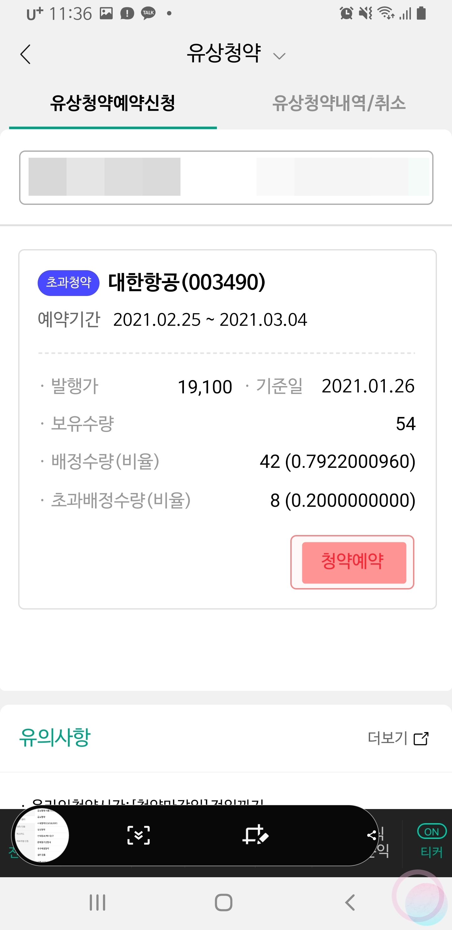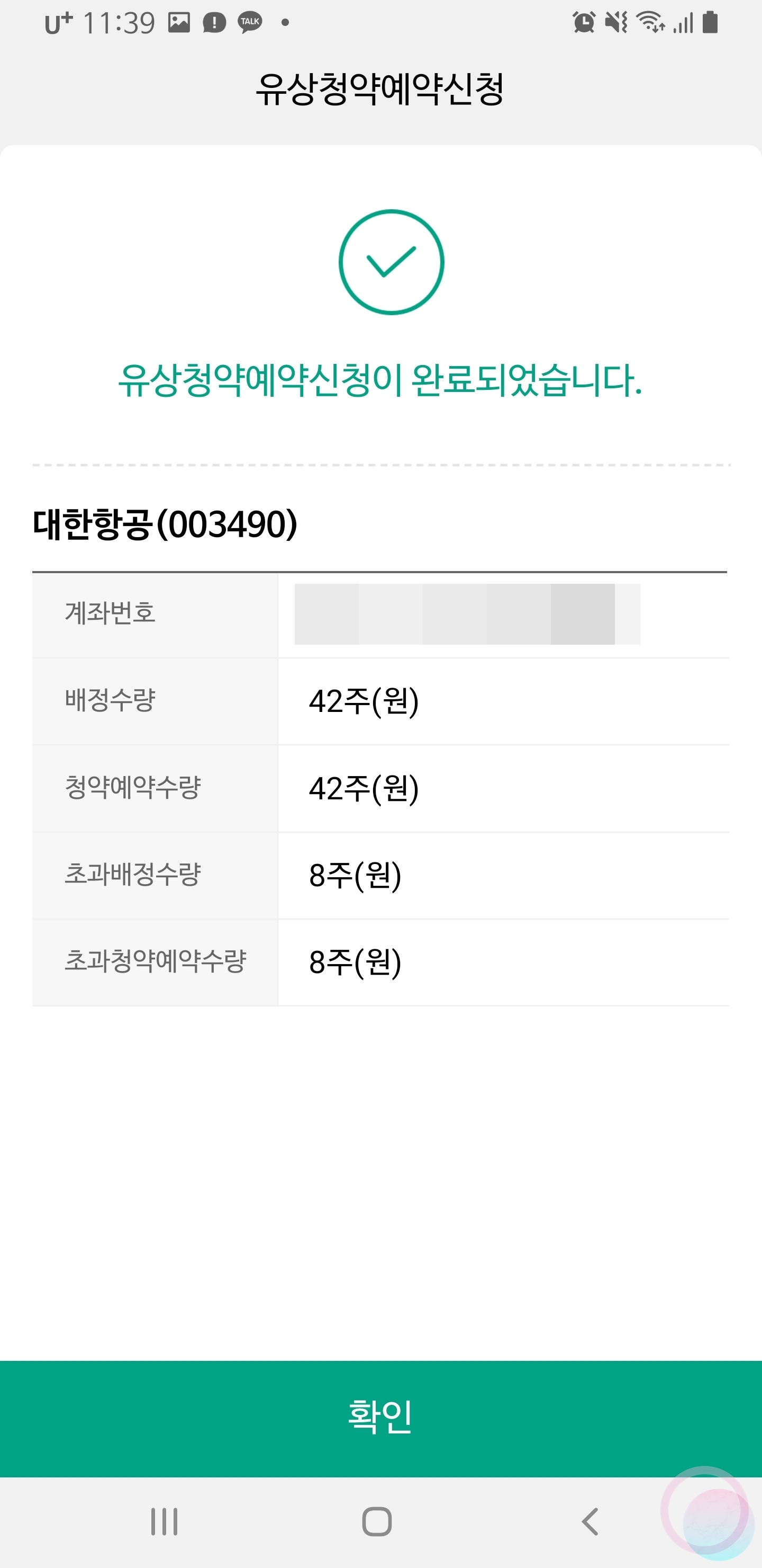 그러면 대한항공 신주 배정수량과, 초과배정수량이 나타납니다. 배정수량은 이전 포스팅에서 설명했던 것처럼 나에게 배정된 수량이지만 초과배정수량이라는 것은 처음 들어봤기 때문에 증권사에 전화해서 물어봤는데요.