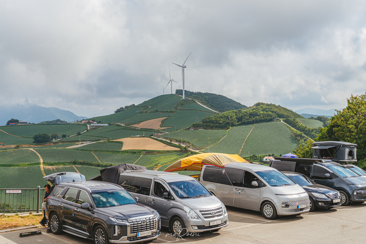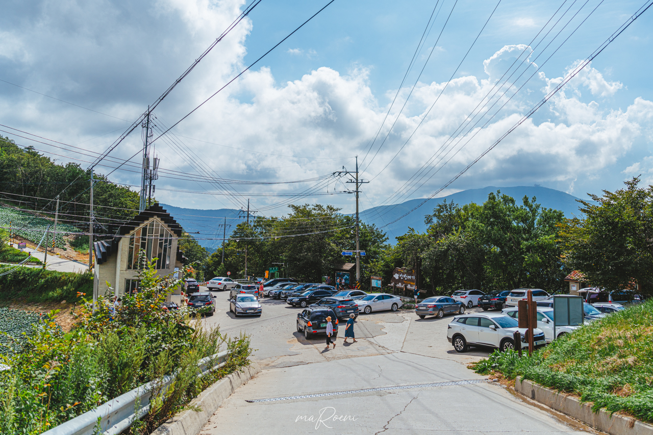 정말 이 위에 마을이 있는걸까? 여기서 뭘 재배한다고? 싶은 생각이 들정도로 덜덜거리는 차를 끌고 계속 올라갔다. 경사도 있는데다가 도로가 좁아지는 구간도 많았어가지고 들어가는데 애좀 먹었다. 끝까지 올라가면 사진과 같은 넓은 공터 형태의 안반데기 주차장을 만날 수 있는데 의외로 공간이 널널해서 주차하는데 어렵지는 않았다.