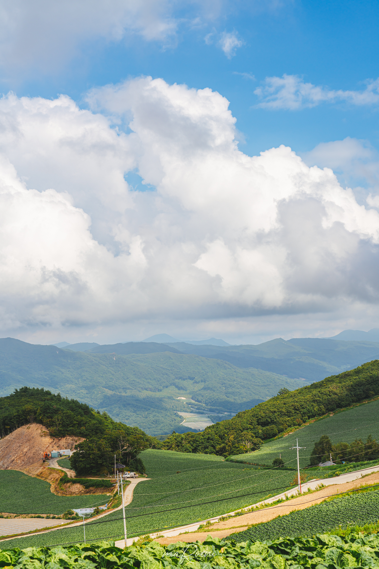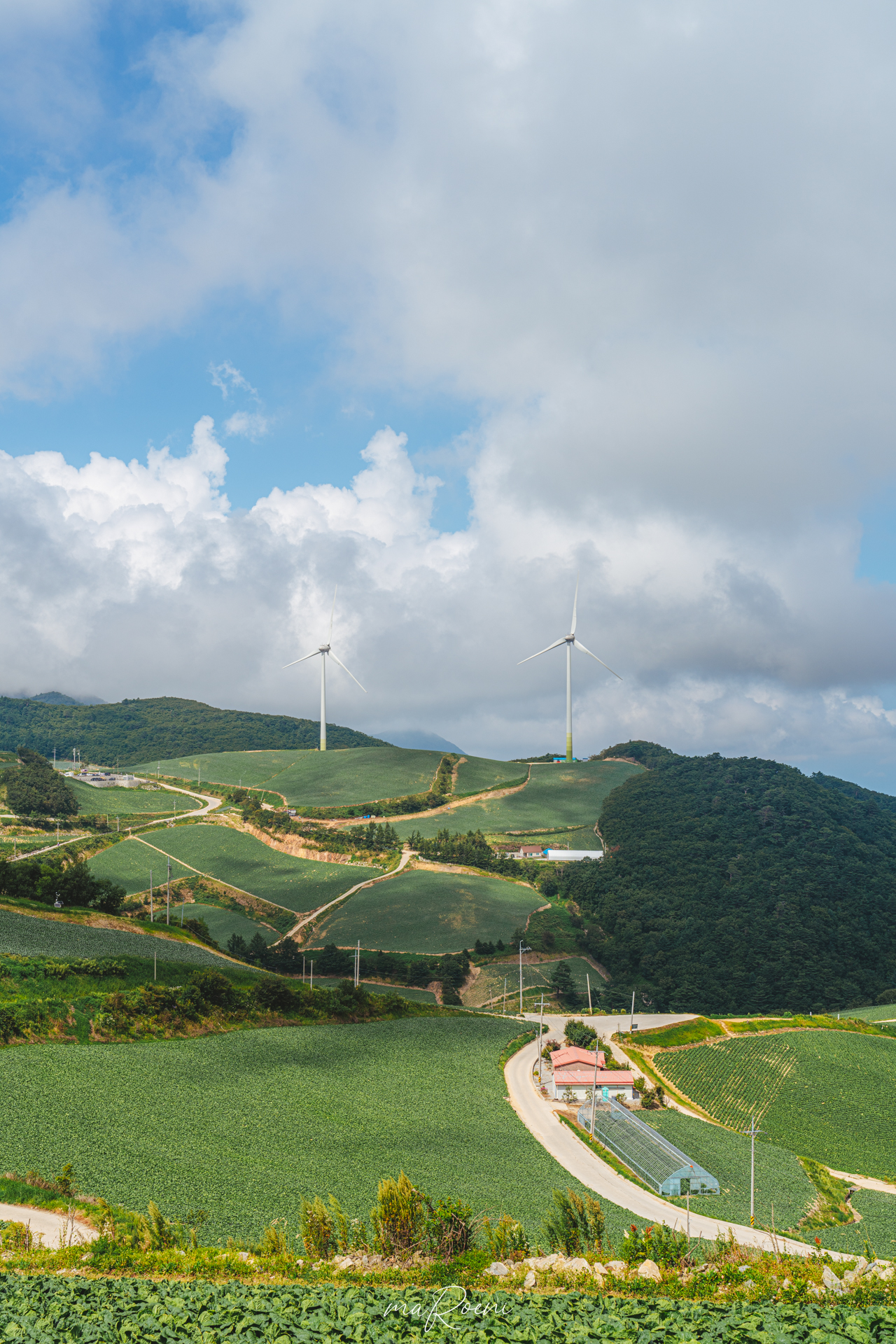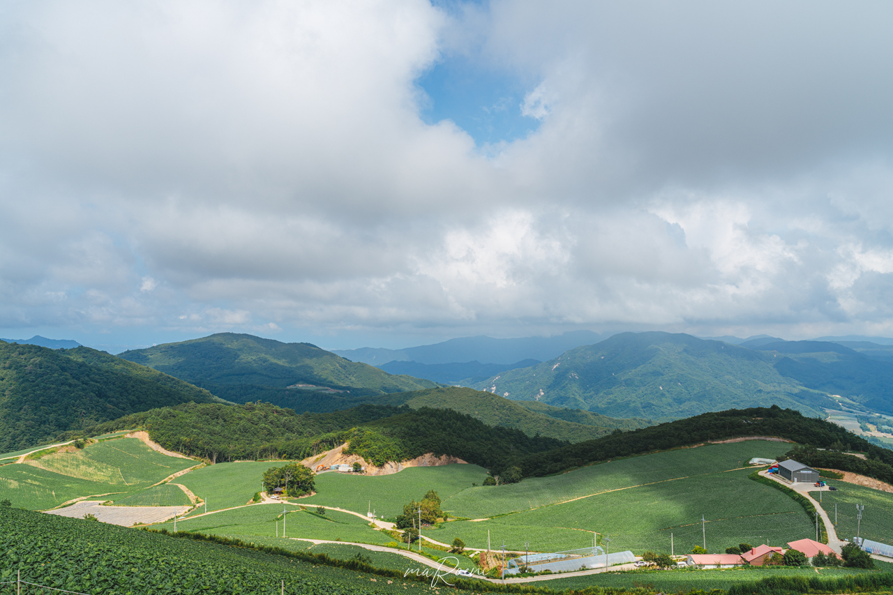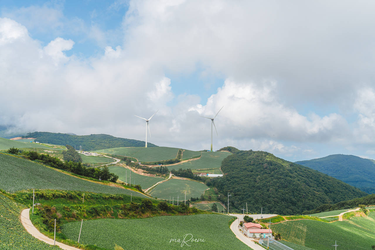 제일먼저 안반데기 멍에전망대부터 올라서 열심히 셔터질을 했다. 폭염이었음에도 안반데기는 고지대에 있어서 제법 시원한 바람이 불어왔다. 오고가는 어르신들 모두 하시는 말씀이.. "여기는 상당히 춥네"였다. 당신이 생각하는 것처럼 쌀쌀한 바람이 불어오는 수준까지는 아니었지만 그래도 적당히 땀을 식히기는 좋았다.