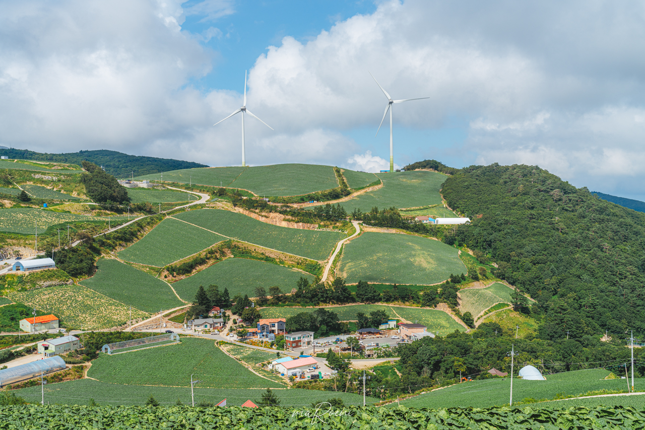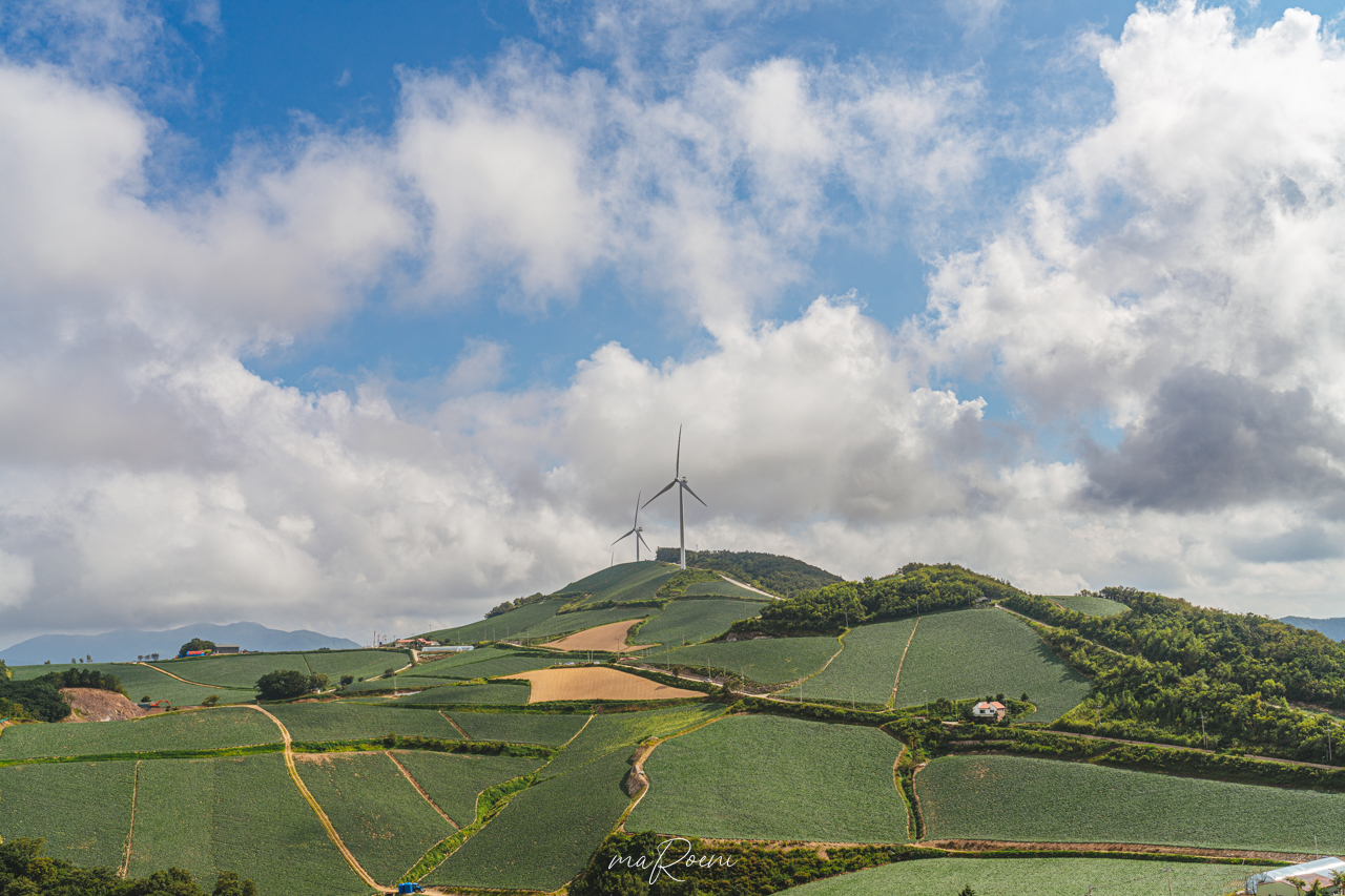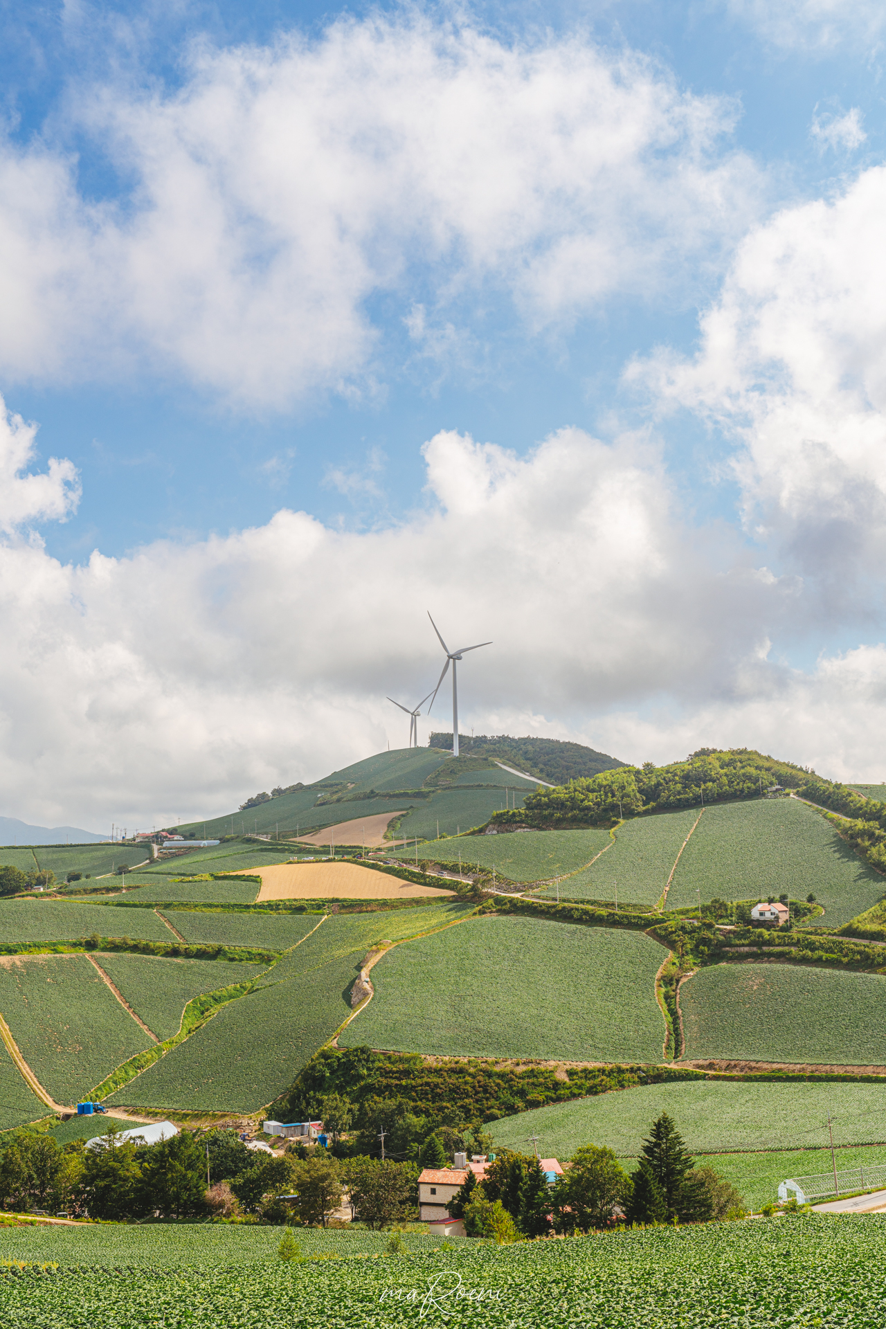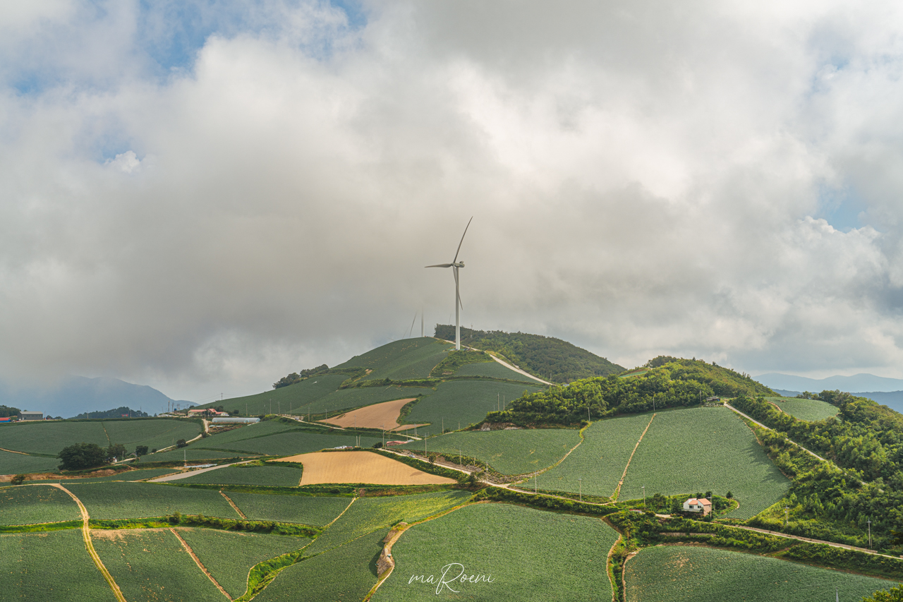 제일먼저 안반데기 멍에전망대부터 올라서 열심히 셔터질을 했다. 폭염이었음에도 안반데기는 고지대에 있어서 제법 시원한 바람이 불어왔다. 오고가는 어르신들 모두 하시는 말씀이.. "여기는 상당히 춥네"였다. 당신이 생각하는 것처럼 쌀쌀한 바람이 불어오는 수준까지는 아니었지만 그래도 적당히 땀을 식히기는 좋았다.