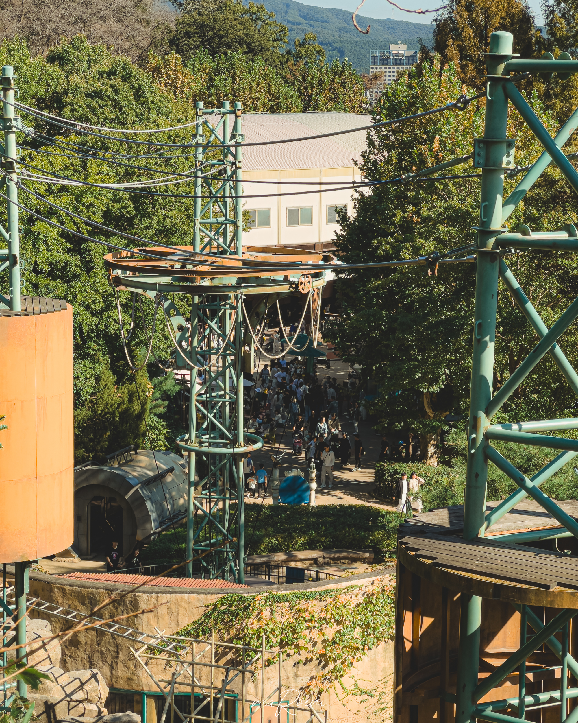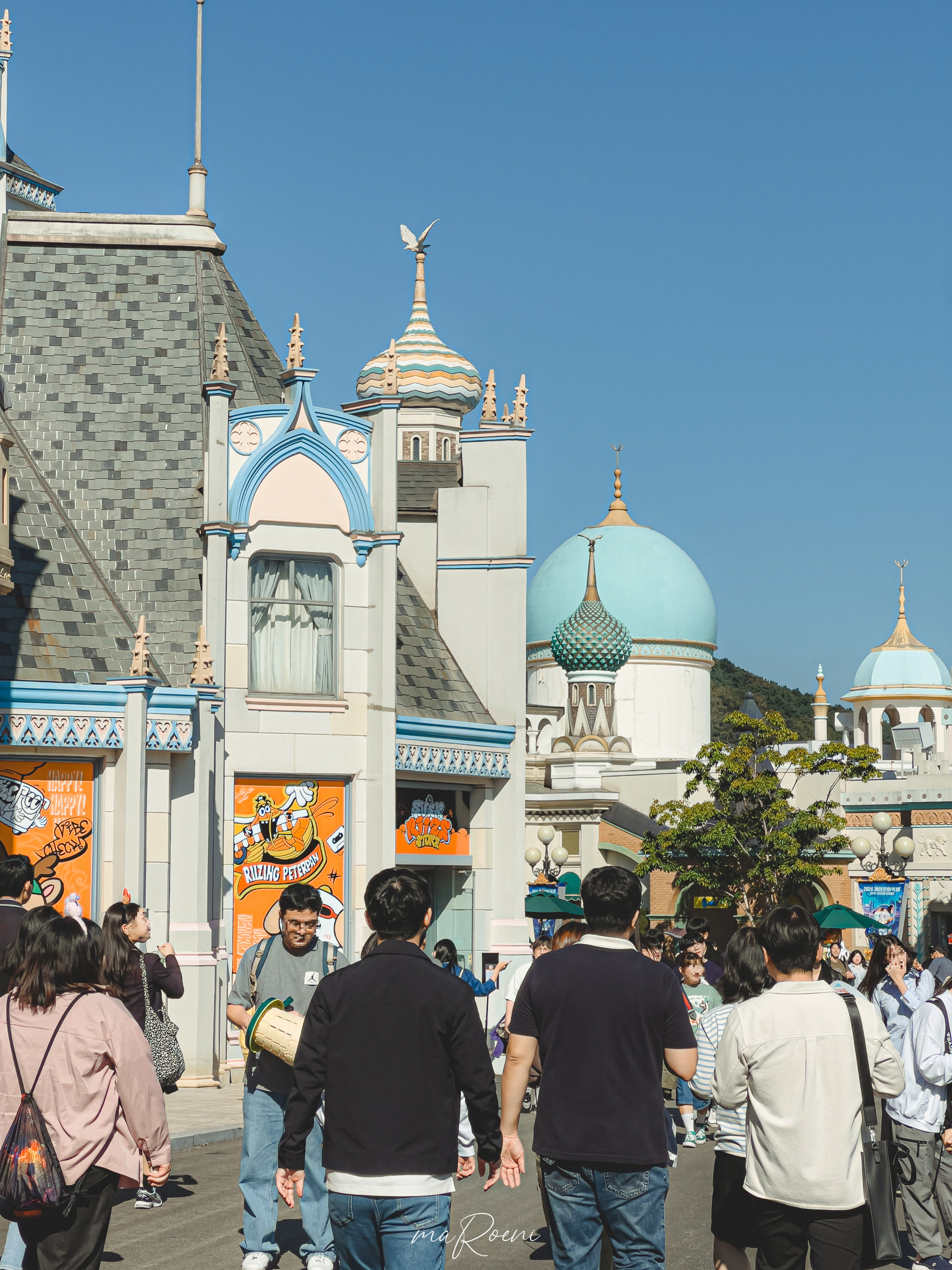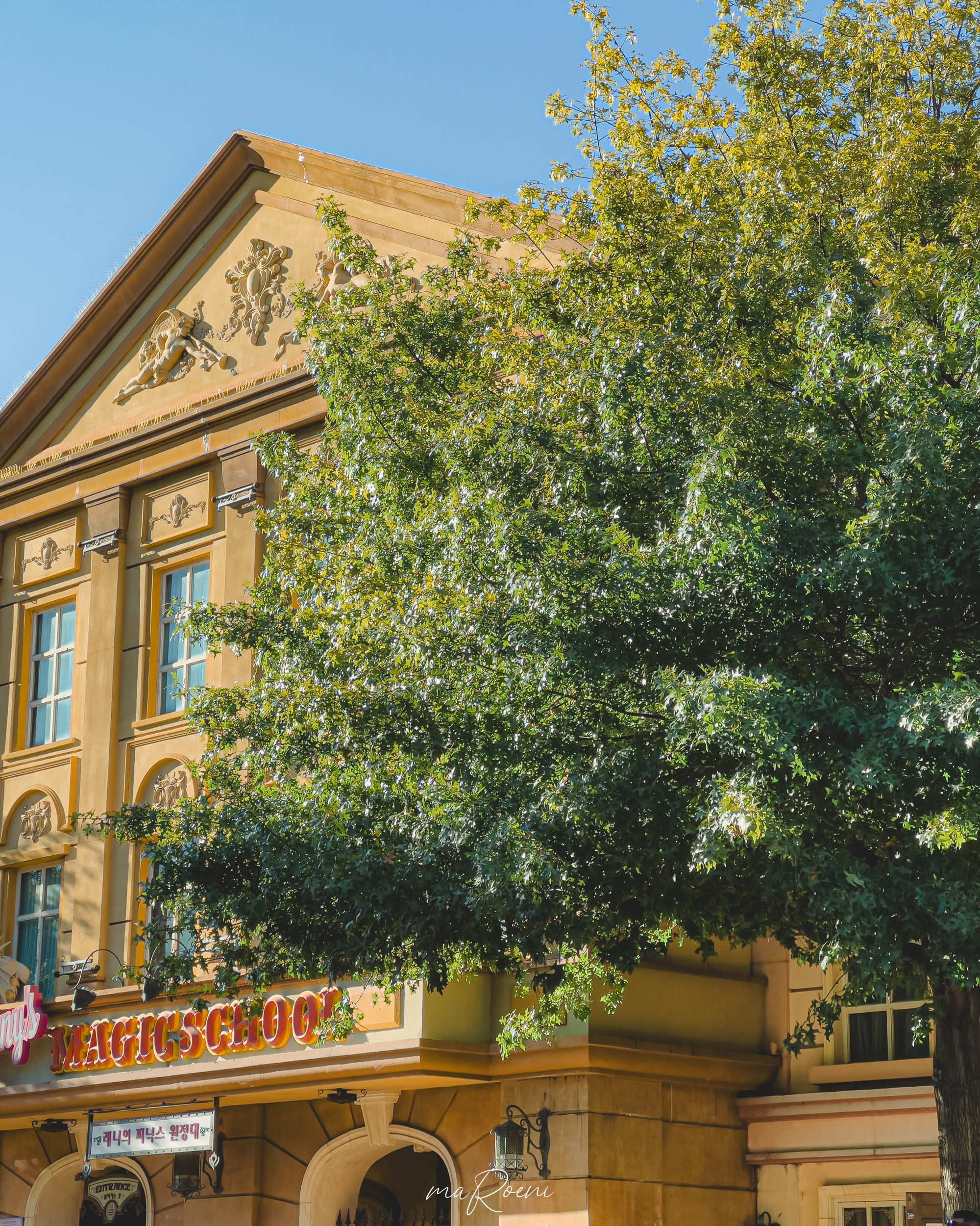 동물원에서 에버랜드의 상징인 우든코스터 쪽으로 내려오니 넓은 광장이 나오더라구요. 여기에는 학교테마의 공포 어트랙션도 있었고 유럽풍의 건물들도 많았어요. USJ의 느낌과 많이 닮아있었습니다. 사진 찍기를 좋아하시는 분들이라면 이쪽에서 사진을 찍으시는게 좋을 것 같았어요.