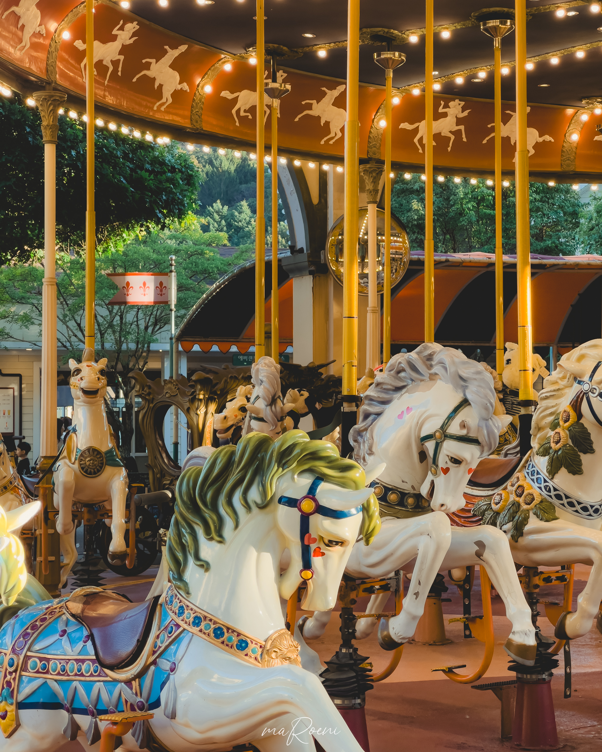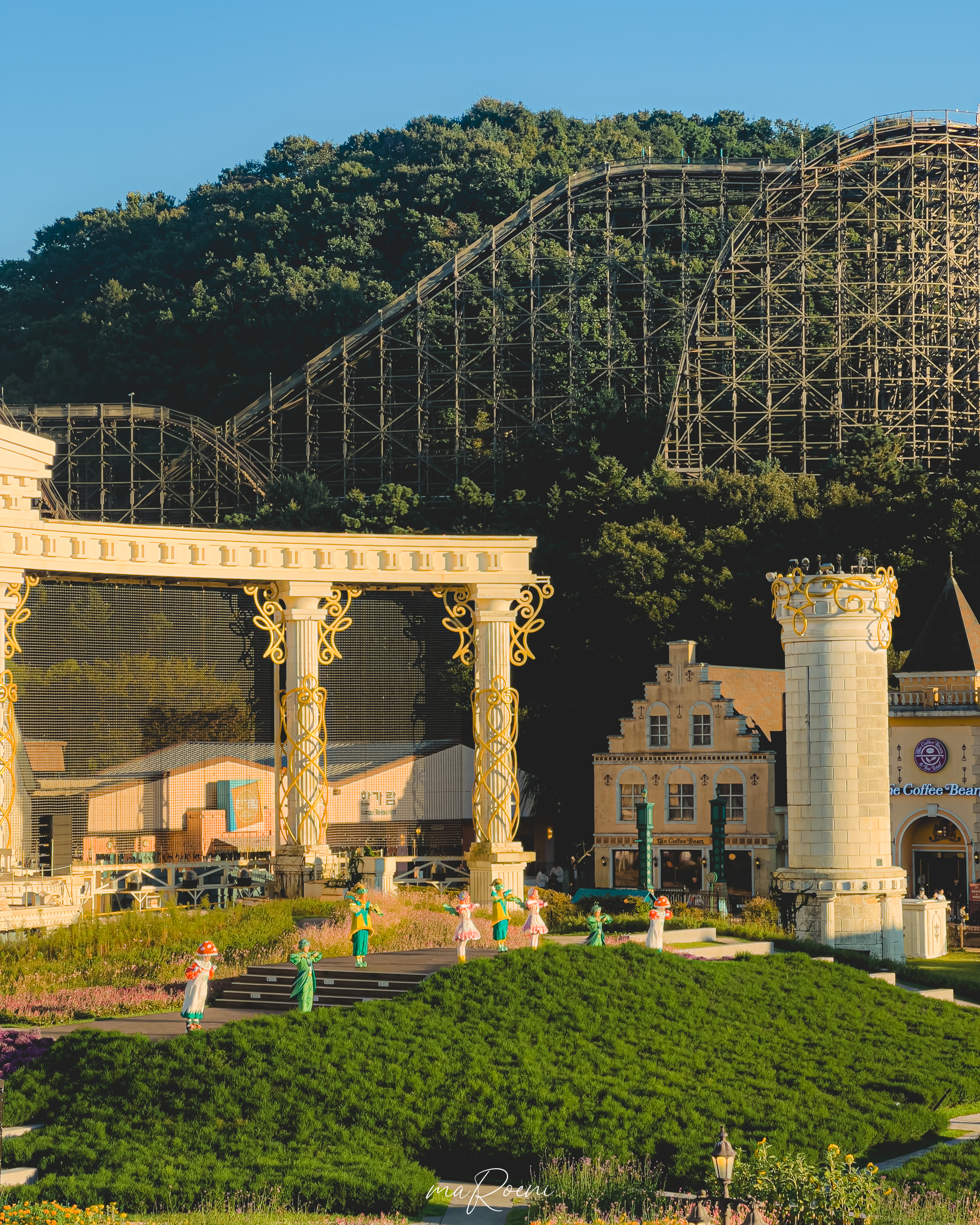 놀이공원에 와서 놀이기구를 안 타고 가는건 손해가 아닐까라는 생각이 싹 사라질 만큼 에버랜드의 경치는 너무나도 매력적이었습니다. 롯데월드에서도 이 짓거리를 몇 번 해보긴 했었는데, 솔직하게 말해서 롯데월드는 좀 아깝다고 느꼈거든요. 예전에는 어땠는지 모르겠지만 지금은 그냥 구닥다리 테마파크 같아서 사진 찍으러 가기도 뭐하고.. 근데 에버랜드는 자연속에 위치해서 그런가 빛도 예쁘게 잘 들어오고 사진도 딱 제가 원하는 느낌으로 잘 담겼습니다.