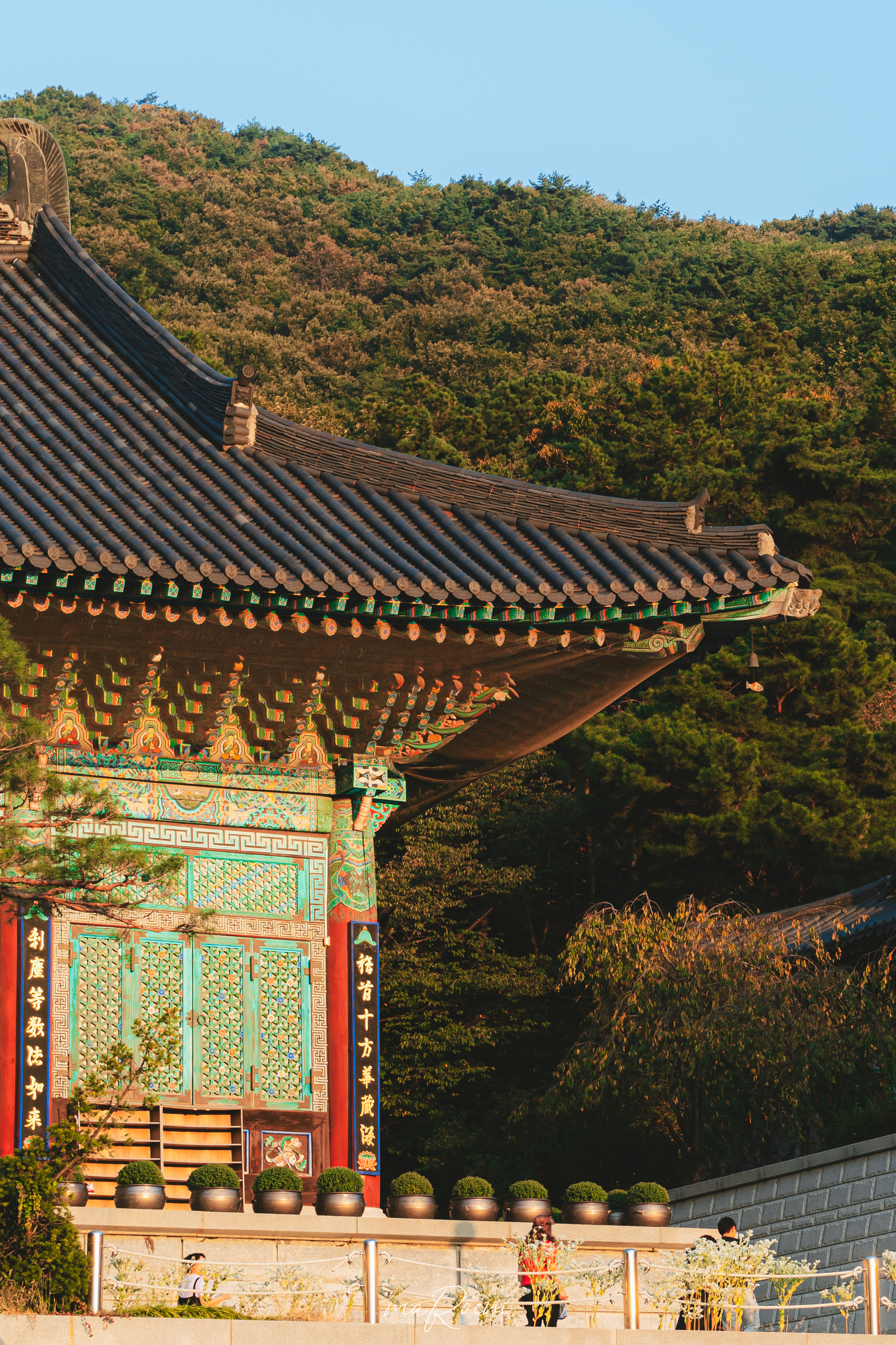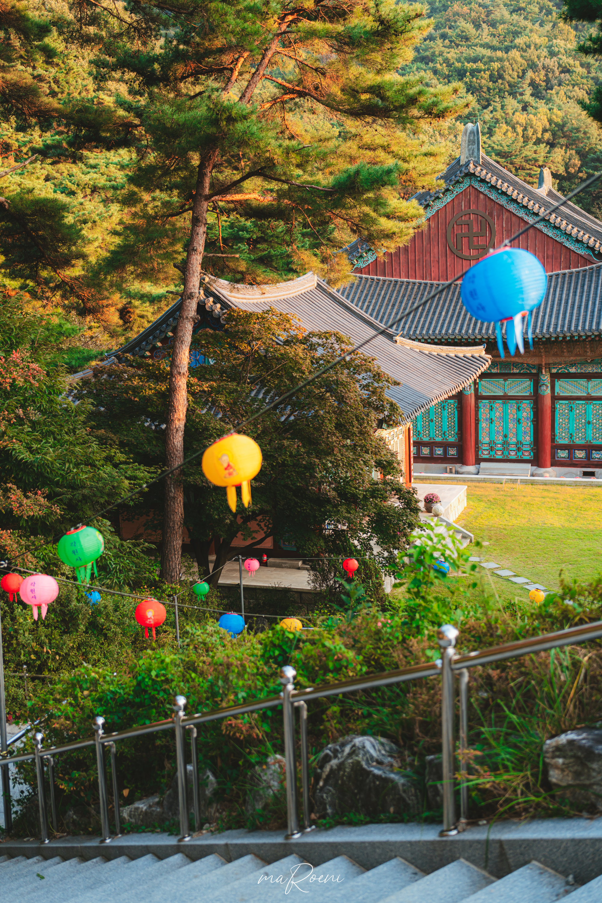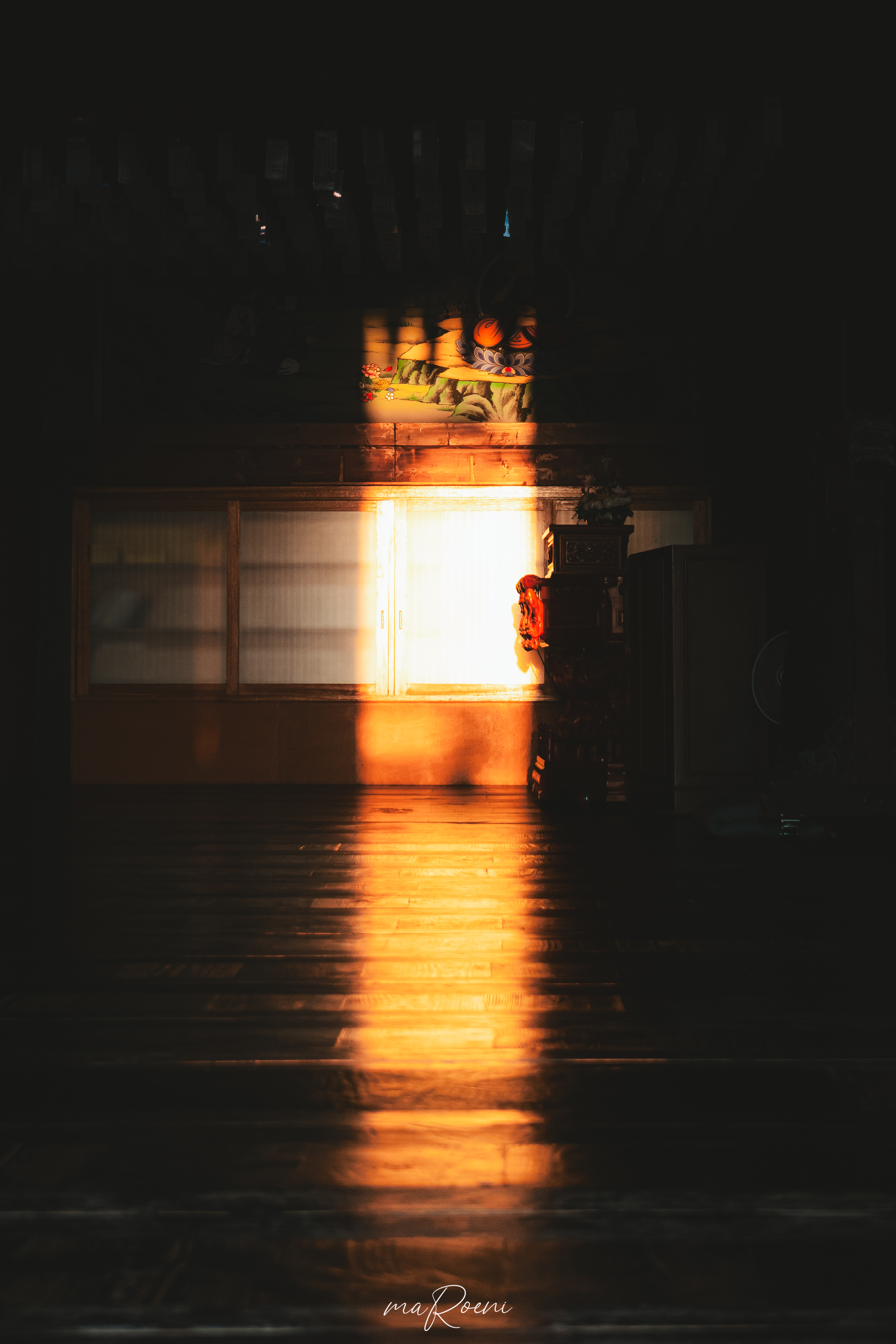 천안 구석구석을 돌아다니던 중 발견한 장소였는데, 운이 좋게도 노을이 지는 시간대와 딱 맞아떨어져서 황금색으로 빛나는 각원사를 카메라로 담을 수 있었답니다.