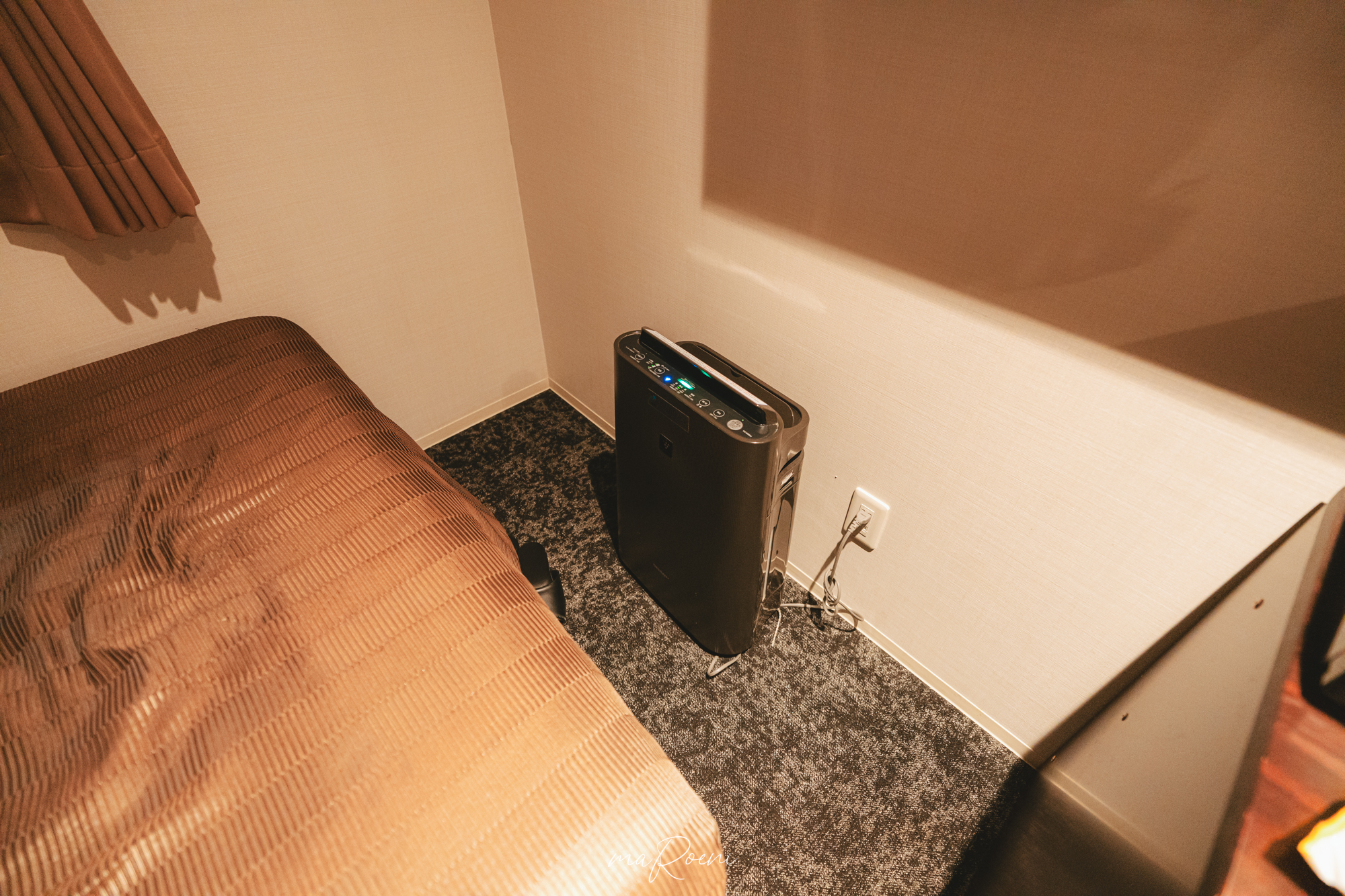 예약이 가득차서 트윈룸을 못 구했어요. 그래서 하는 수 없이 원베드로 예약한 건데 여기가 정말 2인이 이용할 수 있는 건지 싶은 정도의 규모. 거기다가 이렇게 작은 공간 안에 공기청정기라까지 떡하니 버티고 있으니깐 기내용 캐리어를 둘 공간도 부족하더라구요. 아! 캐리어를 두는건 가능하지만.. 펼쳐놓는건 무리.