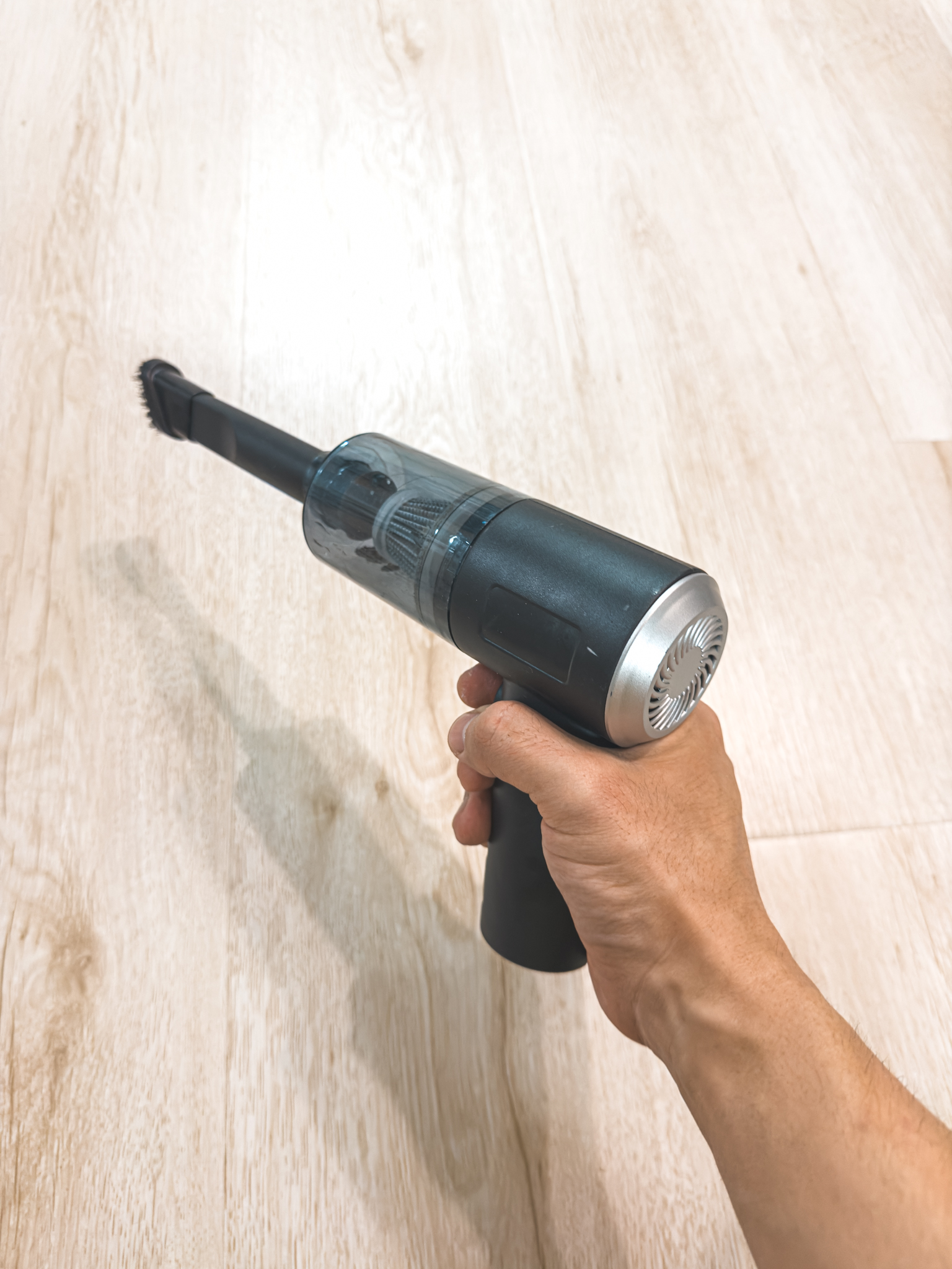 초반 출력은 나쁘지 않습니다. 차량 바닥에 있는 커다란 모래알갱이도 슉슉 잘 빨아들이거든요. 문제는 30초 후입니다. 10~20초만 지나면 출력이 절반 이하로 후우우욱 떨어지면서 아무것도 빨아들이질 못하더군요.
