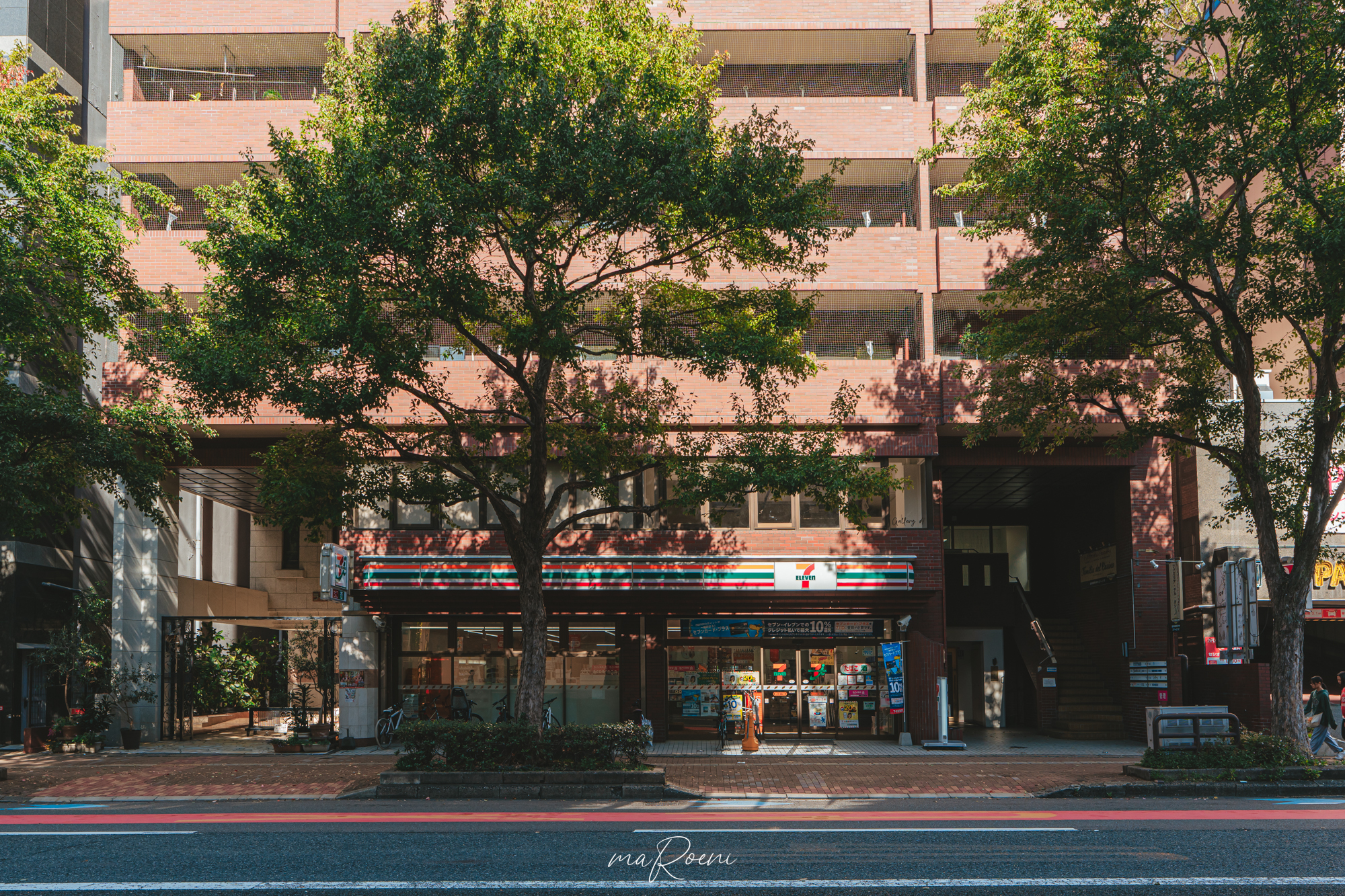 햇살이 머리 위에서 쏟아지는데도 그림자가 정말 멋졌던 거리라 후쿠오카 뚜벅이 여행 중에서 어디가 사진 찍기 제일 좋았냐고 물어본다면 고민할 필요도 없이 이 구간이 가장 예뻤다고 말하고 싶어요.
